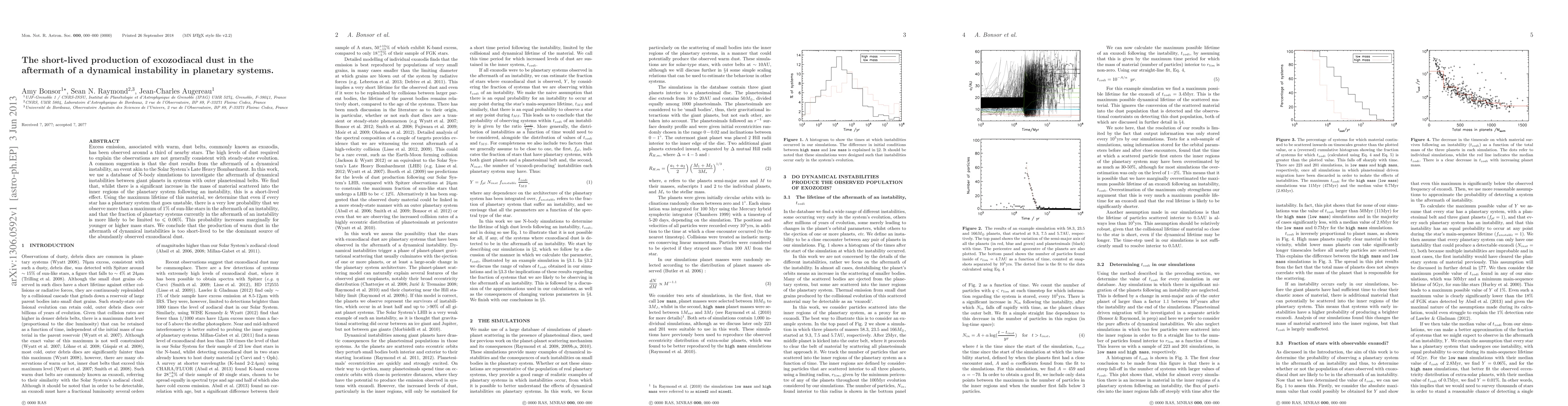 Excess emission, associated with warm, dust belts, commonly known as exozodis, has been observed around a third of nearby stars. The high levels of dust required to explain the observations are not generally consistent with steady-state evolution. A common suggestion is that the dust results from the aftermath of a dynamical instability, an event akin to the Solar System's Late Heavy Bombardment. In this work, we use a database of N-body simulations to investigate the aftermath of dynamical instabilities between giant planets in systems with outer planetesimal belts. We find that, whilst there is a significant increase in the mass of material scattered into the inner regions of the planetary system following an instability, this is a short-lived effect. Using the maximum lifetime of this material, we determine that even if every star has a planetary system that goes unstable, there is a very low probability that we observe more than a maximum of 1% of sun-like stars in the aftermath of an instability, and that the fraction of planetary systems currently in the aftermath of an instability is more likely to be limited to <0.06. This probability increases marginally for younger or higher mass stars. We conclude that the production of warm dust in the aftermath of dynamical instabilities is too short-lived to be the dominant source of the abundantly observed exozodiacal dust.