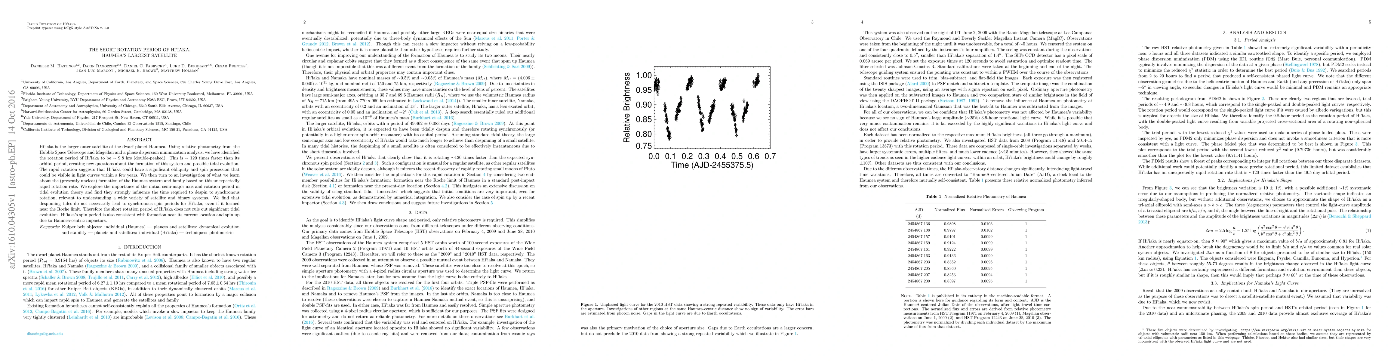Hi'iaka is the larger outer satellite of the dwarf planet Haumea. Using relative photometry from the Hubble Space Telescope and Magellan and a phase dispersion minimization analysis, we have identified the rotation period of Hi'iaka to be ~9.8 hrs (double-peaked). This is ~120 times faster than its orbital period, creating new questions about the formation of this system and possible tidal evolution. The rapid rotation suggests that Hi'iaka could have a significant obliquity and spin precession that could be visible in light curves within a few years. We then turn to an investigation of what we learn about the (presently unclear) formation of the Haumea system and family based on this unexpectedly rapid rotation rate. We explore the importance of the initial semi-major axis and rotation period in tidal evolution theory and find they strongly influence the time required to despin to synchronous rotation, relevant to understanding a wide variety of satellite and binary systems. We find that despinning tides do not necessarily lead to synchronous spin periods for Hi'iaka, even if it formed near the Roche limit. Therefore the short rotation period of Hi'iaka does not rule out significant tidal evolution. Hi'iaka's spin period is also consistent with formation near its current location and spin up due to Haumea-centric impactors.