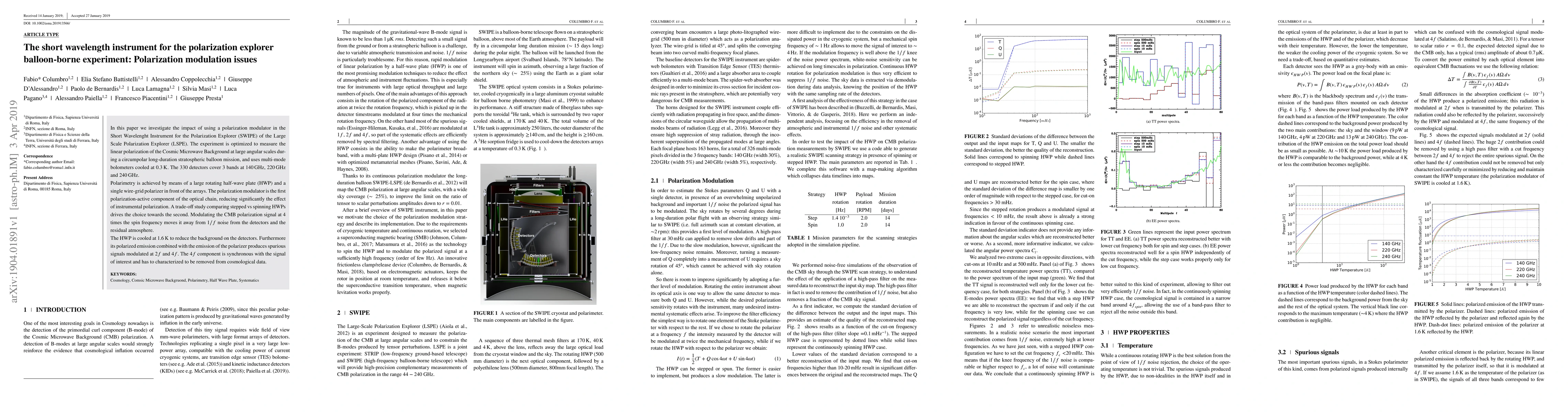 The research investigates the impact of using a polarization modulator in the Short Wavelength Instrument for the Polarization Explorer (SWIPE) for a balloon-borne experiment. It compares stepped vs spinning HWPs, with the latter chosen due to its ability to modulate the CMB polarization signal at 4 times the spin frequency, moving it away from $1/f$ noise from detectors and residual atmosphere.