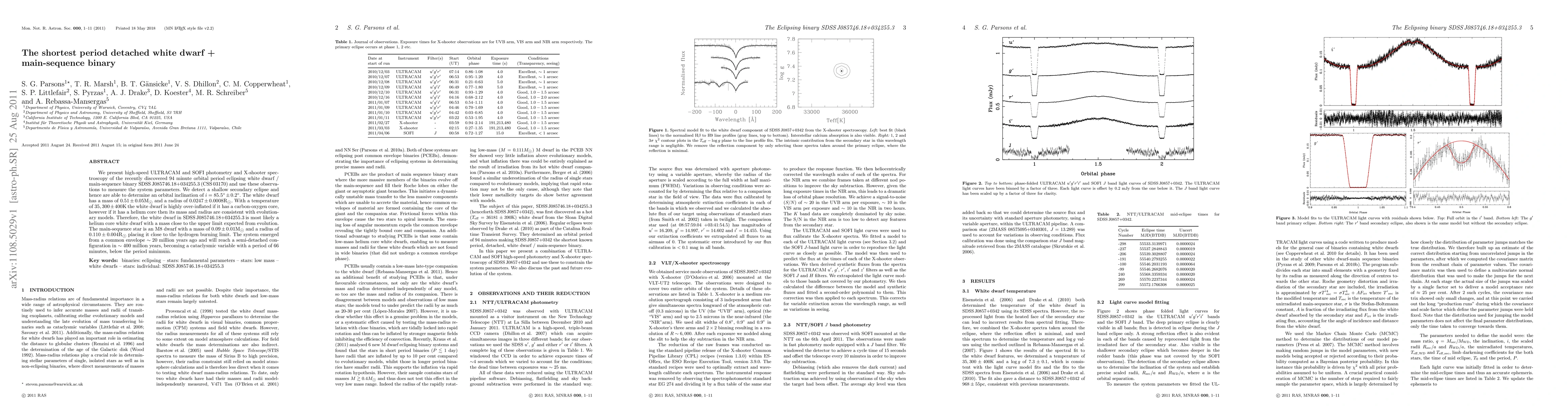 We present high-speed ULTRACAM and SOFI photometry and X-shooter spectroscopy of the recently discovered 94 minute orbital period eclipsing white dwarf / main-sequence binary SDSS J085746.18+034255.3 (CSS 03170) and use these observations to measure the system parameters. We detect a shallow secondary eclipse and hence are able to determine an orbital inclination of 85.5 +/- 0.2 deg. The white dwarf has a mass of 0.51 +/- 0.05 Msun and a radius of 0.0247 +/- 0.0008 Rsun. With a temperature of 35,300 +/- 400K the white dwarf is highly over-inflated if it has a carbon-oxygen core, however if it has a helium core then its mass and radius are consistent with evolutionary models. Therefore, the white dwarf in SDSS J085746.18+034255.3 is most likely a helium core white dwarf with a mass close to the upper limit expected from evolution. The main-sequence star is an M8 dwarf with a mass of 0.09 +/- 0.01 Msun and a radius of 0.110 +/- 0.004 Rsun placing it close to the hydrogen burning limit. The system emerged from a common envelope ~20 million years ago and will reach a semi-detached configuration in ~400 million years, becoming a cataclysmic variable with a period of 66 minutes, below the period minimum.