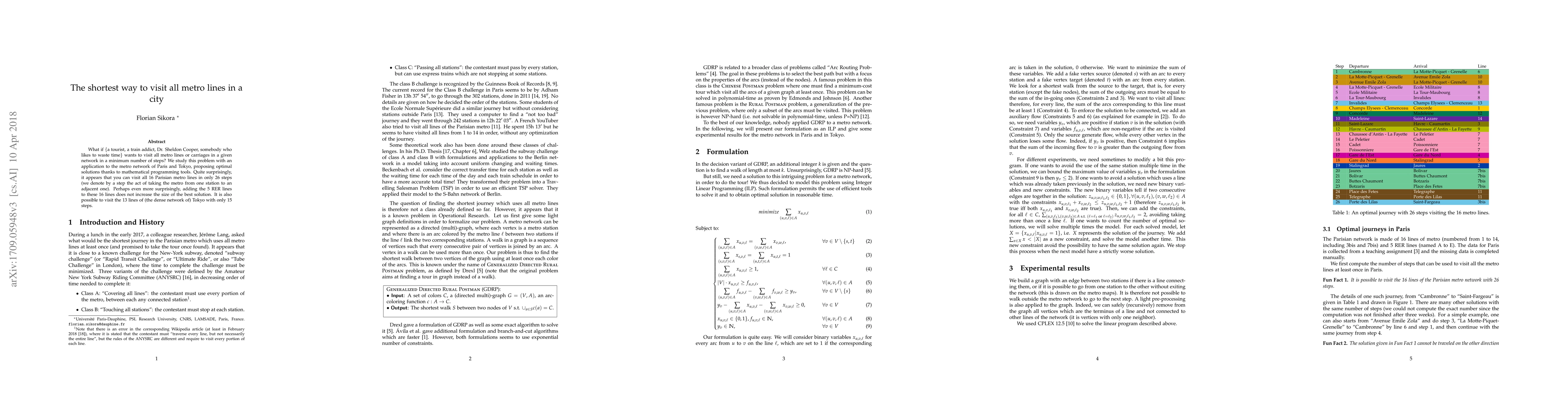 Researchers found that visiting all metro lines in Paris can be done in 26 steps and in Tokyo in 15 steps, using an optimal solution through mathematical programming tools.