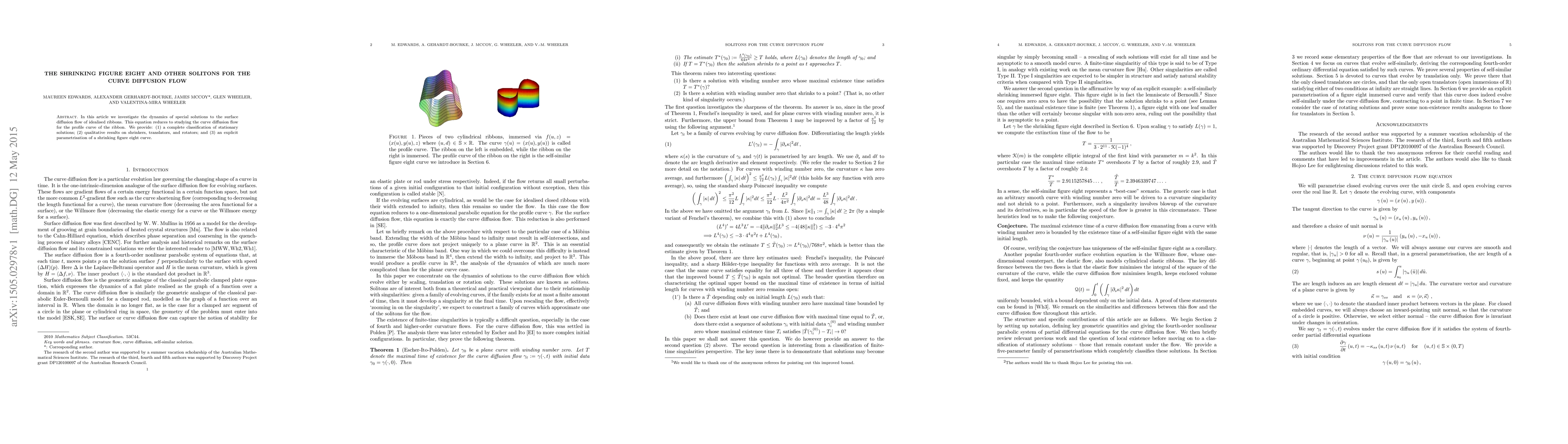 In this article we investigate the dynamics of special solutions to the surface diffusion flow of idealised ribbons. This equation reduces to studying the curve diffusion flow for the profile curve of the ribbon. We provide: (1) a complete classification of stationary solutions; (2) qualitative results on shrinkers, translators, and rotators; and (3) an explicit parametrisation of a shrinking figure eight curve.
