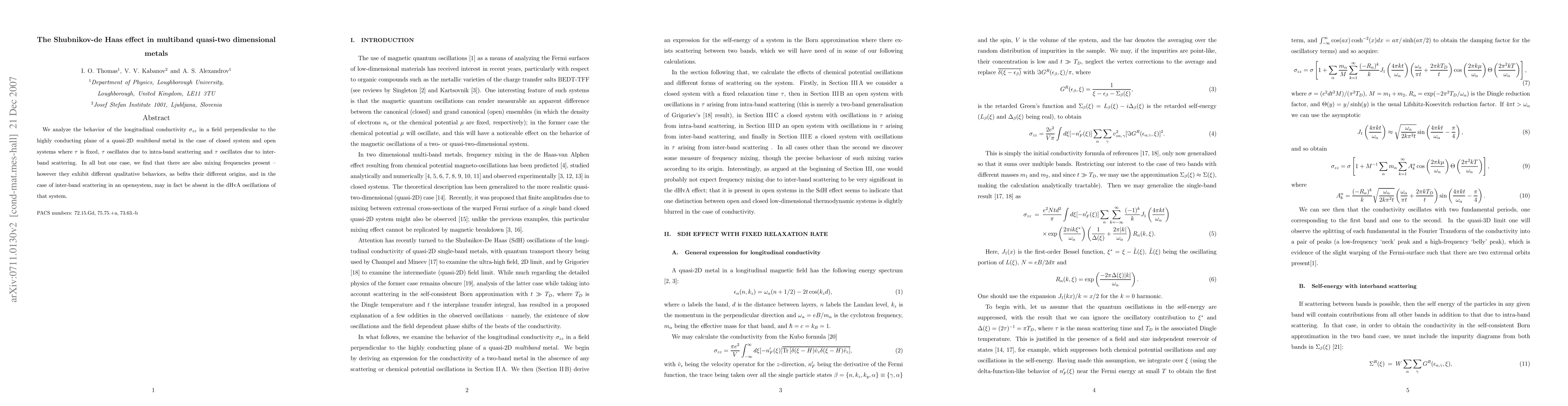 We analyze the behavior of the longitudinal conductivity $\sigma_{zz}$ in a field perpendicular to the highly conducting plane of a quasi-2D {\em multiband} metal in the case of closed system and open systems where $\tau$ is fixed, $\tau$ oscillates due to intra-band scattering and $\tau$ oscillates due to inter-band scattering. In all but one case, we find that there are also mixing frequencies present -- however they exhibit different qualitative behaviors, as befits their different origins, and in the case of inter-band scattering in an opensystem, may in fact be absent in the dHvA oscillations of that system.