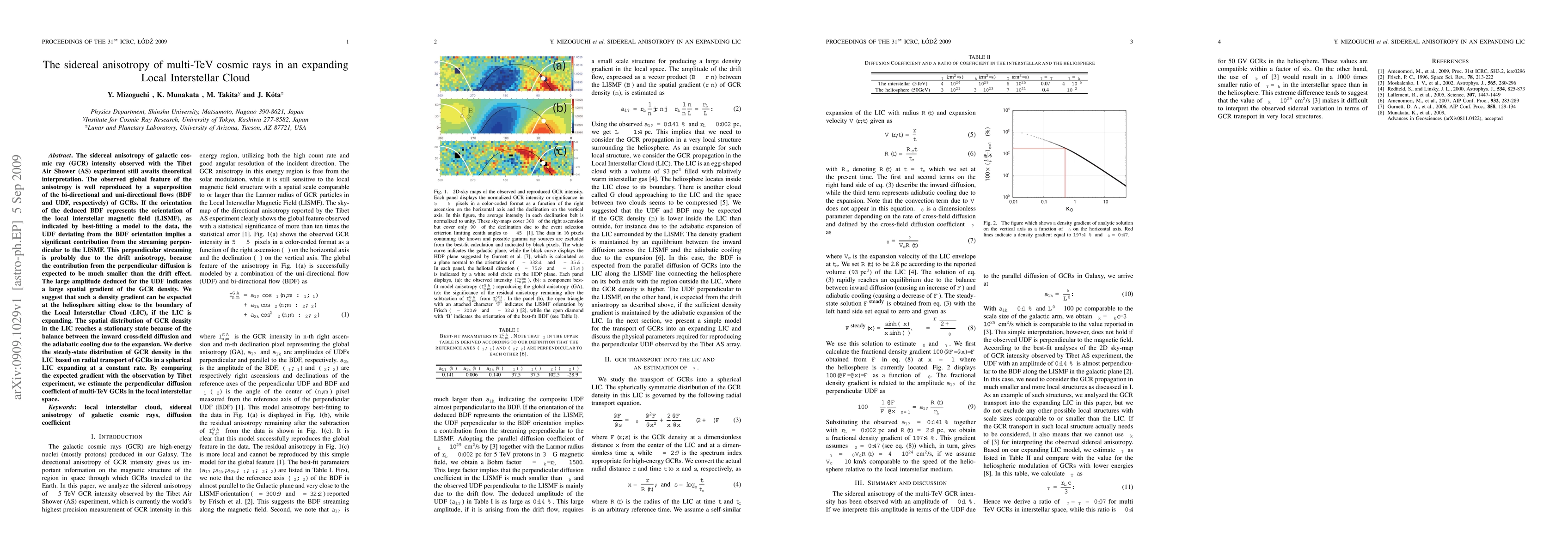 The sidereal anisotropy of galactic cosmic ray (GCR) intensity observed with the Tibet Air Shower (AS) experiment still awaits theoretical interpretation. The observed global feature of the anisotropy is well reproduced by a superposition of the bi-directional and uni-directional flows (BDF and UDF, respectively) of GCRs. If the orientation of the deduced BDF represents the orientation of the local interstellar magnetic field (LISMF), as indicated by best-fitting a model to the data, the UDF deviating from the BDF orientation implies a significant contribution from the streaming perpendicular to the LISMF. This perpendicular streaming is probably due to the drift anisotropy, because the contribution from the perpendicular diffusion is expected to be much smaller than the drift effect. The large amplitude deduced for the UDF indicates a large spatial gradient of the GCR density. We suggest that such a density gradient can be expected at the heliosphere sitting close to the boundary of the Local Interstellar Cloud (LIC), if the LIC is expanding. The spatial distribution of GCR density in the LIC reaches a stationary state because of the balance between the inward cross-field diffusion and the adiabatic cooling due to the expansion. We derive the steady-state distribution of GCR density in the LIC based on radial transport of GCRs in a spherical LIC expanding at a constant rate. By comparing the expected gradient with the observation by Tibet experiment, we estimate the perpendicular diffusion coefficient of multi-TeV GCRs in the local interstellar space.