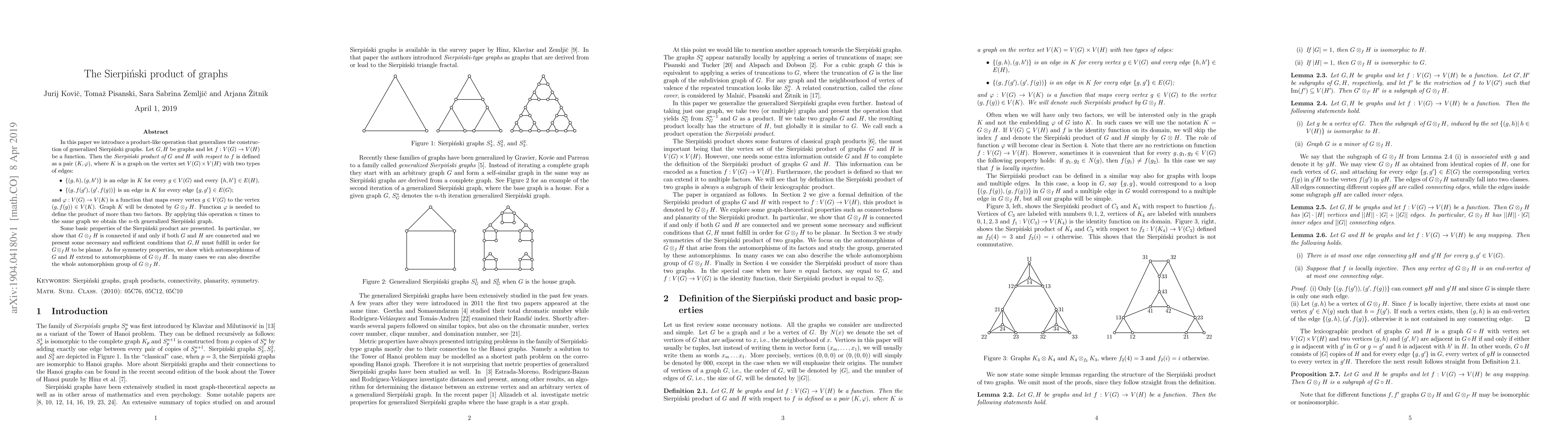 This paper introduces the Sierpińsky product of graphs, a generalization of Sierpińsky graphs, defined through a function mapping between vertex sets of two graphs. It explores properties such as connectivity, planarity, and automorphisms of the resulting graph $G \otimes_f H$.