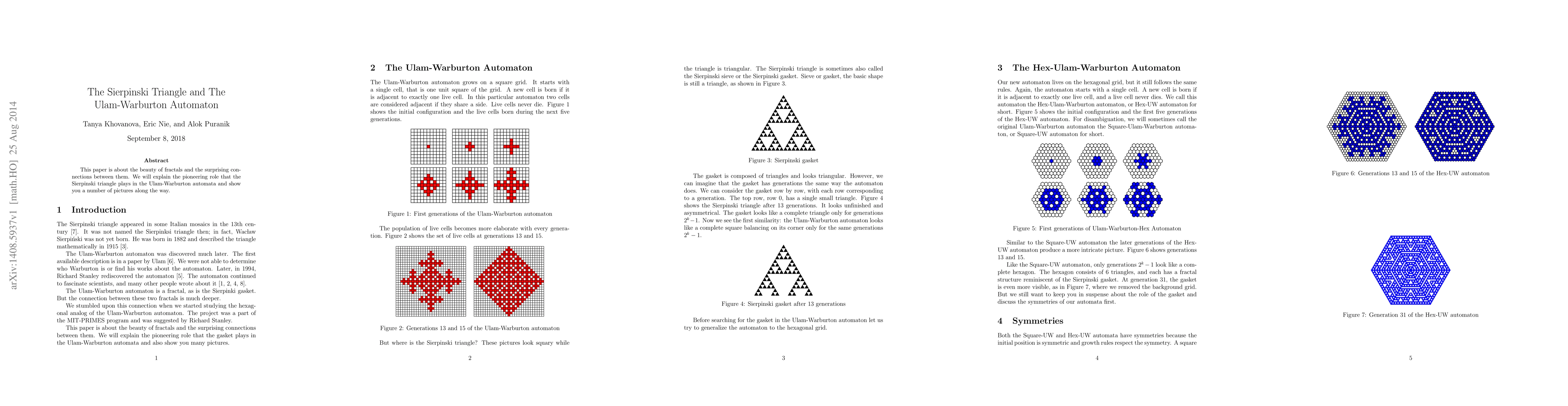 This paper is about the beauty of fractals and the surprising connections between them. We will explain the pioneering role that the Sierpinski triangle plays in the Ulam-Warburton automata and show you a number of pictures along the way.