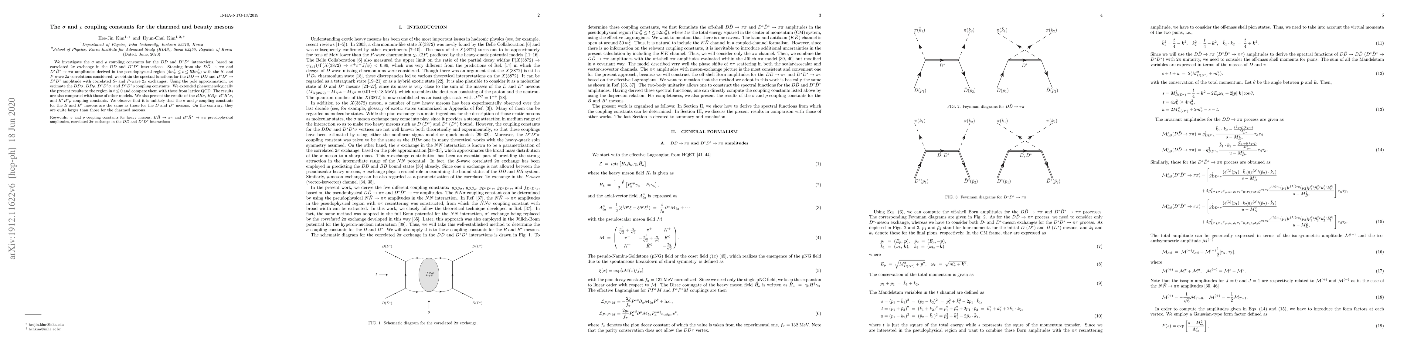 We investigate the $\sigma$ and $\rho$ coupling constants for the $DD$ and $D^*D^*$ interactions, based on correlated $2\pi$ exchange in the $DD$ and $D^*D^*$ interactions. Starting from the $D\bar{D}\to \pi\pi$ and $D^*\bar{D}^*\to \pi\pi$ amplitudes derived in the pseudophysical region ($4m_\pi^2\le t \le 52m_\pi^2$) with the $S$- and $P$-wave $2\pi$ correlations considered, we obtain the spectral functions for the $DD\to DD$ and $D^*D^*\to D^*D^*$ amplitude with correlated $S$- and $P$-wave $2\pi$ exchanges. Using the pole approximation, we estimate the $DD\sigma$, $DD\rho$, $D^*D^*\sigma$, and $D^*D^*\rho$ coupling constants. We extended phenomenologically the present results to the region in $t\le 0$ and compare them with those from lattice QCD. The results are also compared with those of other models. We also present the results of the $BB\sigma$, $BB\rho$, $B^*B^*\sigma$, and $B^*B^*\rho$ coupling constants. We observe that it is unlikely that the $\sigma$ and $\rho$ coupling constants for the $B$ and $B^*$ mesons are the same as those for the $D$ and $D^*$ mesons. On the contrary, they are quite larger than those for the charmed mesons.