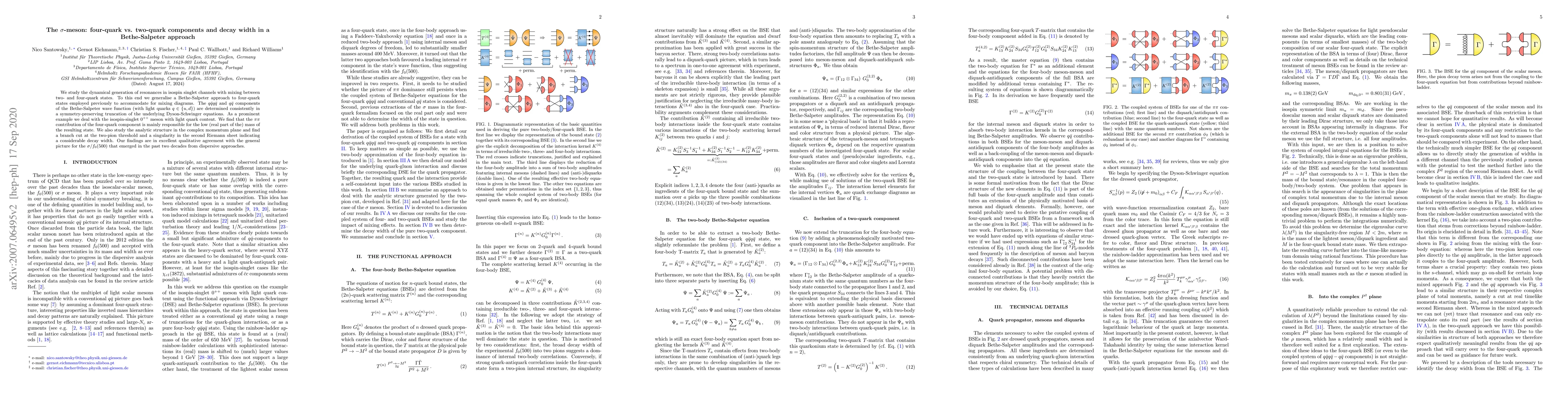 We study the dynamical generation of resonances in isospin singlet channels with mixing between two- and four-quark states. To this end we generalise a Bethe-Salpeter approach to four-quark states employed previously \cite{Heupel:2012ua} to accommodate for mixing diagrams. The $q\bar{q}q\bar{q}$ and $q\bar{q}$ components of the Bethe-Salpeter wave function (with light quarks $q\in\{u,d\}$) are determined consistently in a symmetry-preserving truncation of the underlying Dyson-Schwinger equations. As a prominent example we deal with the isospin-singlet $0^{++}$ meson with light quark content. We find that the $\pi\pi$ contribution of the four-quark component is mainly responsible for the low (real part of the) mass of the resulting state. We also study the analytic structure in the complex momentum plane and find a branch cut at the two-pion threshold and a singularity in the second Riemann sheet indicating a considerable decay width. Our findings are in excellent qualitative agreement with the general picture for the $\sigma/f_0(500)$ that emerged in the past two decades from dispersive approaches \cite{Pelaez:2015qba}.