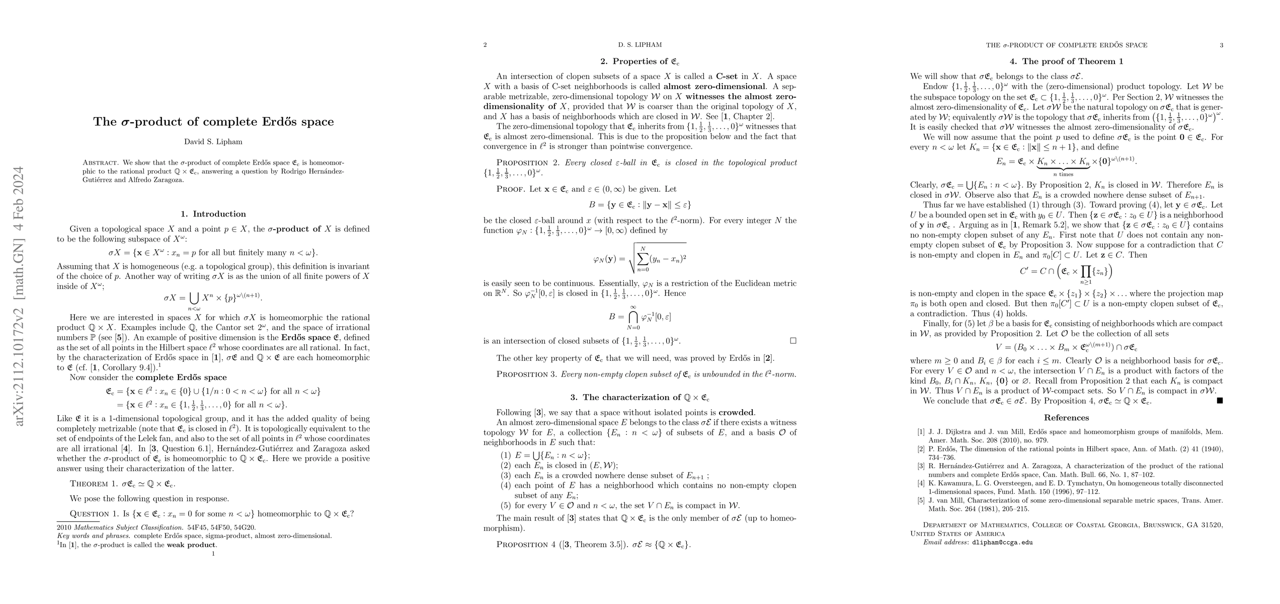 The paper demonstrates that the $\sigma$-product of the complete Erdős space $\mathfrak{E}_{\mathrm{c}}$ is homeomorphic to the rational product $\mathbb{Q} \times \mathfrak{E}_{\mathrm{c}}$, resolving a question posed by Rodrigo Hernández-Gutiérrez and Alfredo Zaragoza.