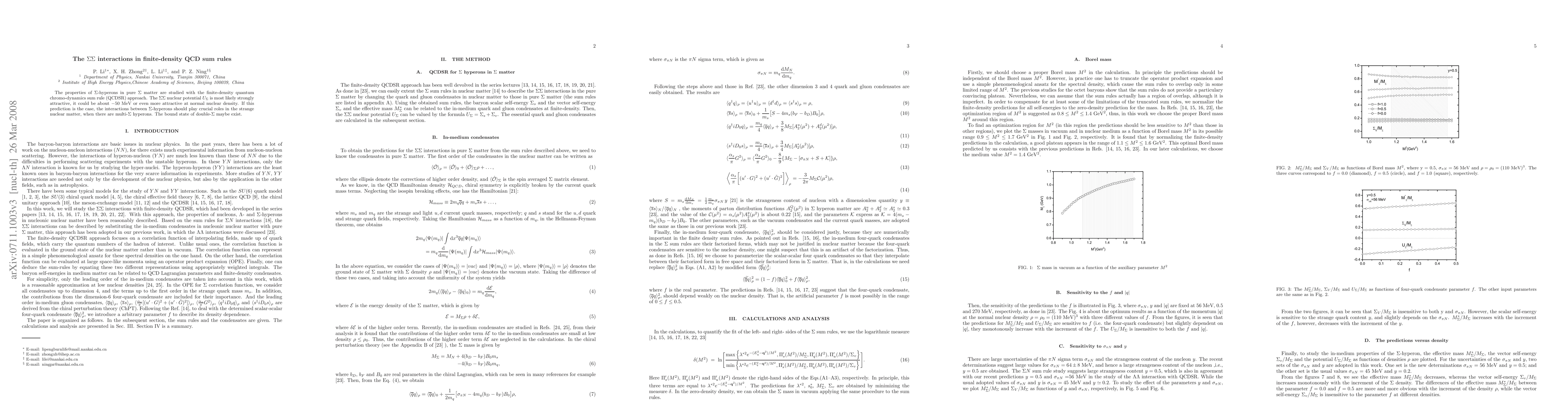 The properties of $\Sigma$-hyperons in pure $\Sigma$ matter are studied with the finite-density quantum chromo-dynamics sum rule (QCDSR) approach. The $\Sigma\Sigma$ nuclear potential $U_\Sigma$ is most likely strongly attractive, it could be about -50 MeV or even more attractive at normal nuclear density. If this prediction is the case, the interactions between $\Sigma$-hyperons should play crucial roles in the strange nuclear matter, when there are multi-$\Sigma$ hyperons. The bound state of double-$\Sigma$ maybe exist.