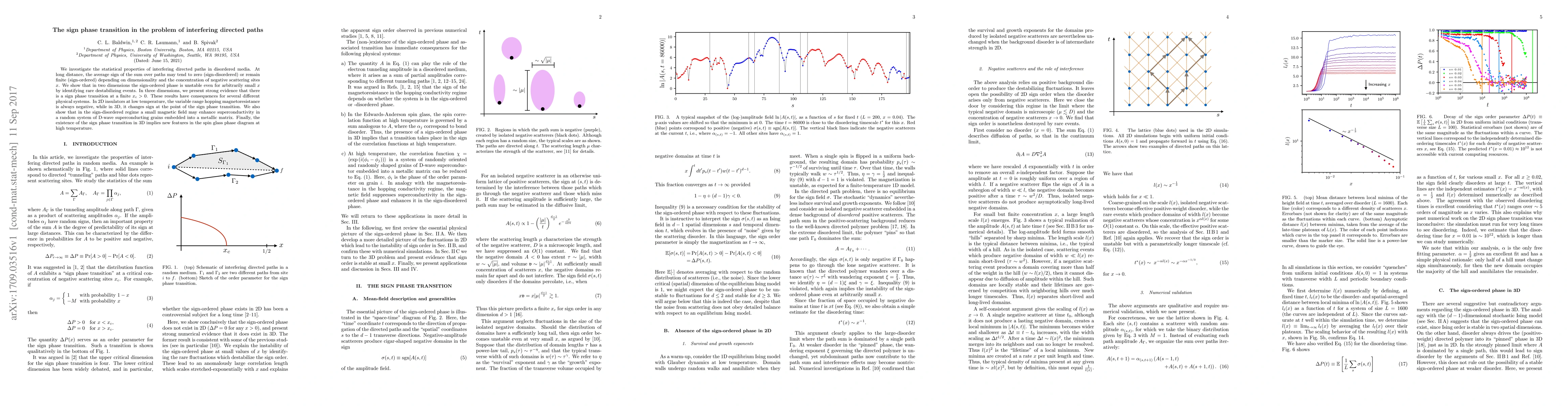 This paper explores the statistical behavior of interfering directed paths in disordered media, revealing a sign phase transition in three dimensions at a critical concentration of negative scattering sites. In two dimensions, the sign-ordered phase is unstable, while in three dimensions, the sign phase transition has implications for physical systems like variable range hopping magnetoresistance and superconductivity.