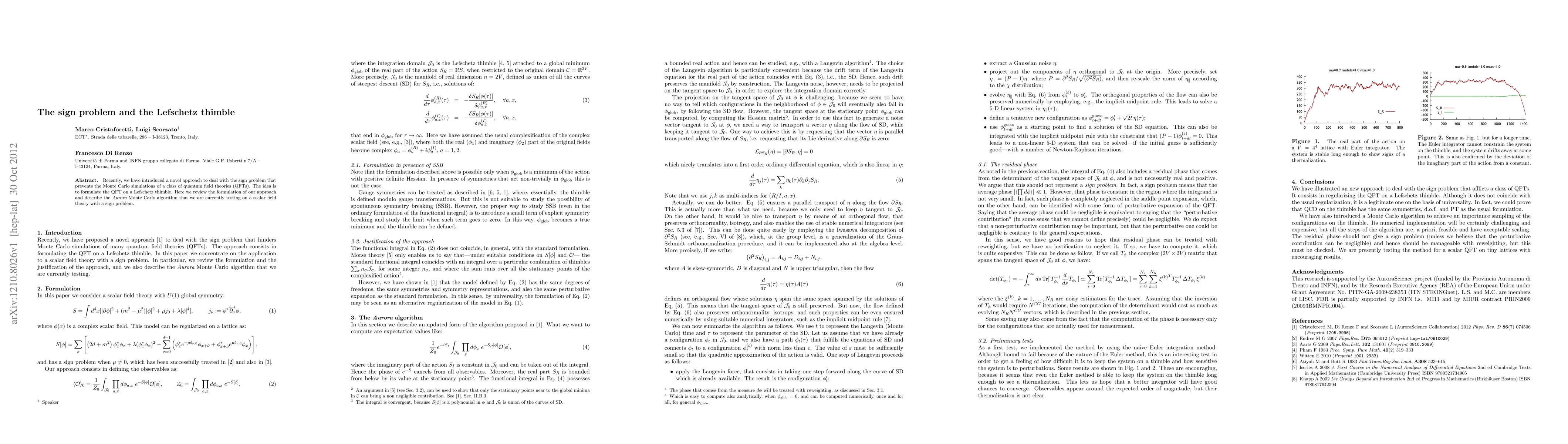 Recently, we have proposed a novel approach (arxiv:1205.3996) to deal with the sign problem that hinders Monte Carlo simulations of many quantum field theories (QFTs). The approach consists in formulating the QFT on a Lefschetz thimble. In this paper we concentrate on the application to a scalar field theory with a sign problem. In particular, we review the formulation and the justification of the approach, and we also describe the Aurora Monte Carlo algorithm that we are currently testing.