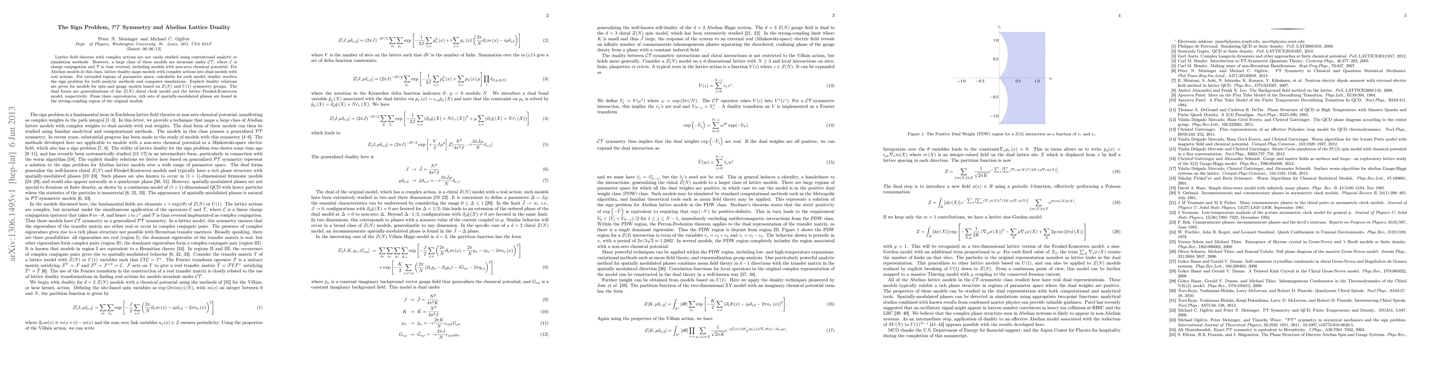 This paper explores lattice field theories with complex actions, revealing that Abelian models exhibit CT symmetry, enabling the use of lattice duality to resolve the sign problem. The study provides explicit duality relations for Z(N) and U(1) symmetry-based models, uncovering new spatially-modulated phases in the strong-coupling region.