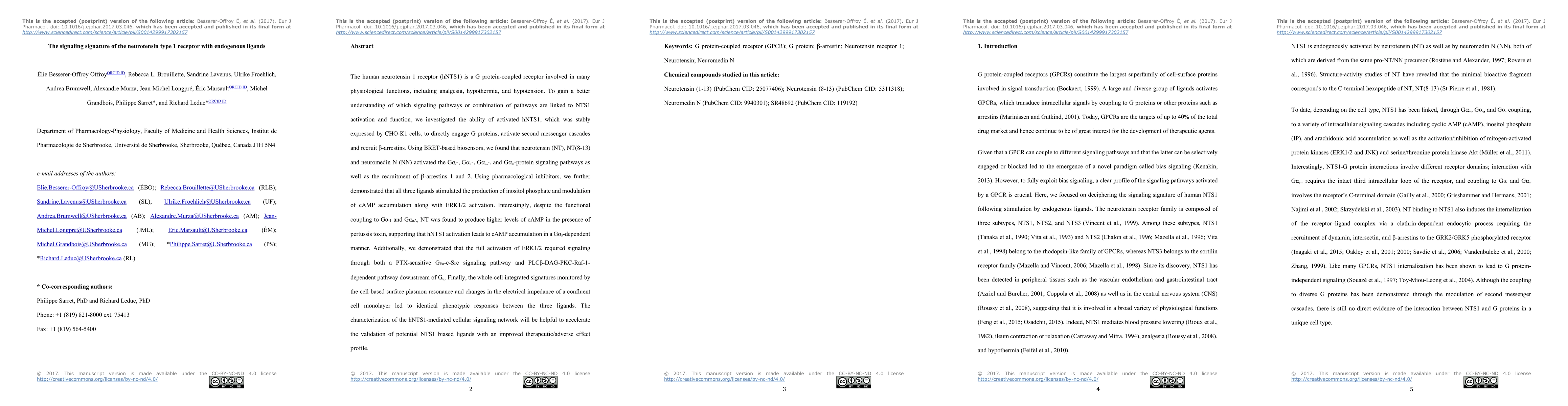 This study investigates the signaling pathways of the human neurotensin 1 receptor (hNTS1) activated by endogenous ligands, revealing engagement of G{\alpha}q, G{\alpha}i1, G{\alpha}oA, and G{\alpha}13 proteins, as well as \b{eta}-arrestin recruitment. The research highlights the receptor's role in cAMP accumulation and ERK1/2 activation, suggesting potential therapeutic pathways for NTS1 biased ligands.