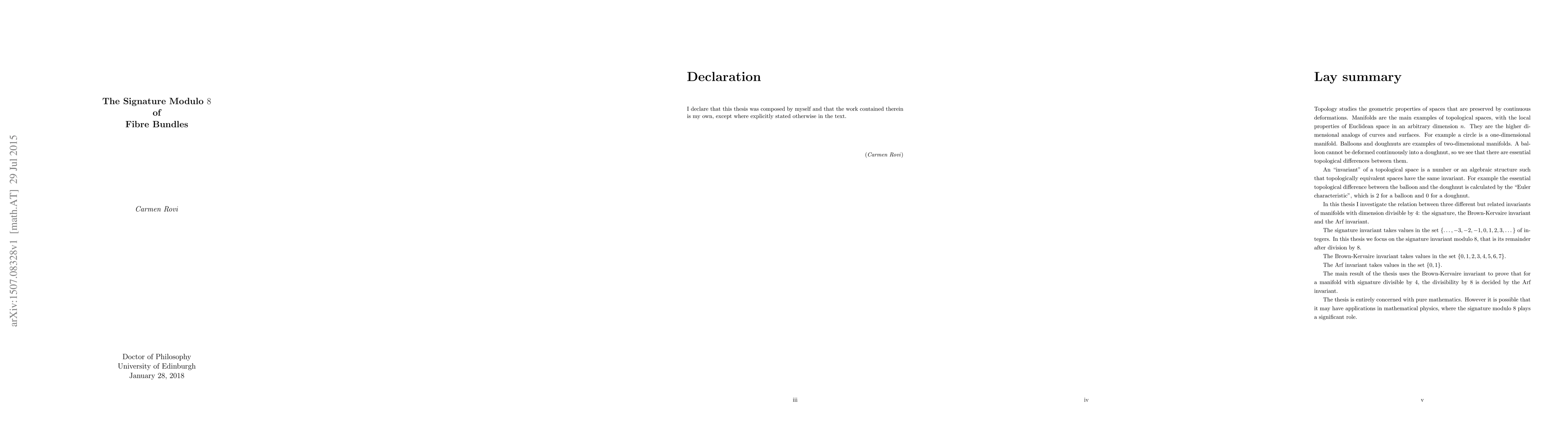 This thesis is concerned with the residues modulo 4 and 8 of the signature of a 4k-dimensional oriented geometric Poincare complex. The Z_8-valued Brown-Kervaire invariant of Z_4-valued quadratic forms is used to prove that if the signature is divisible by 4, the divisibility by 8 is detected by the Arf invariant of a Z_2-valued quadratic form. This result is applied to a fibration of geometric Poincare complexes with the total space 4k-dimensional. It is known that the signature is multiplicative modulo 4, and that there are examples of non-multiplicativity modulo 8. We identify the obstruction to multiplicativity modulo 8 with the Arf invariant of the Z_2-valued quadratic form defined on an appropriate Z_2-cohomology vector space by dividing the Z_4-valued Pontryagin square by 2. The obstruction is then shown to vanish under certain assumptions.