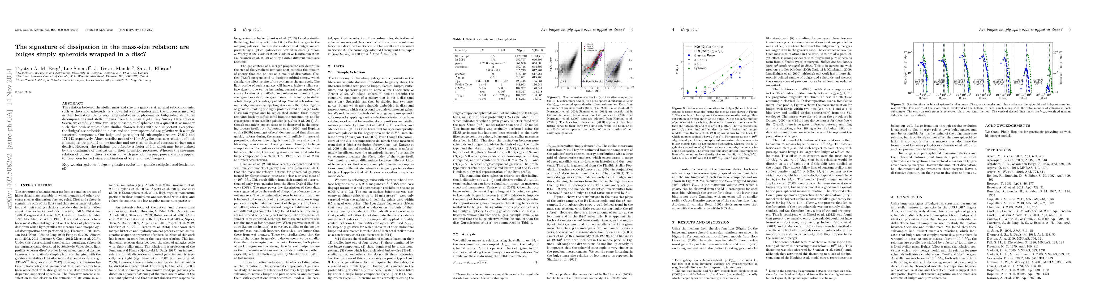 The relation between the stellar mass and size of a galaxy's structural subcomponents, such as discs and spheroids, is a powerful way to understand the processes involved in their formation. Using very large catalogues of photometric bulge+disc structural decompositions and stellar masses from the Sloan Digital Sky Survey Data Release Seven, we carefully define two large subsamples of spheroids in a quantitative manner such that both samples share similar characteristics with one important exception: the 'bulges' are embedded in a disc and the 'pure spheroids' are galaxies with a single structural component. Our bulge and pure spheroid subsample sizes are 76,012 and 171,243 respectively. Above a stellar mass of ~$10^{10}$ M$_{\odot}$, the mass-size relations of both subsamples are parallel to one another and are close to lines of constant surface mass density. However, the relations are offset by a factor of 1.4, which may be explained by the dominance of dissipation in their formation processes. Whereas the size-mass relation of bulges in discs is consistent with gas-rich mergers, pure spheroids appear to have been formed via a combination of 'dry' and 'wet' mergers.