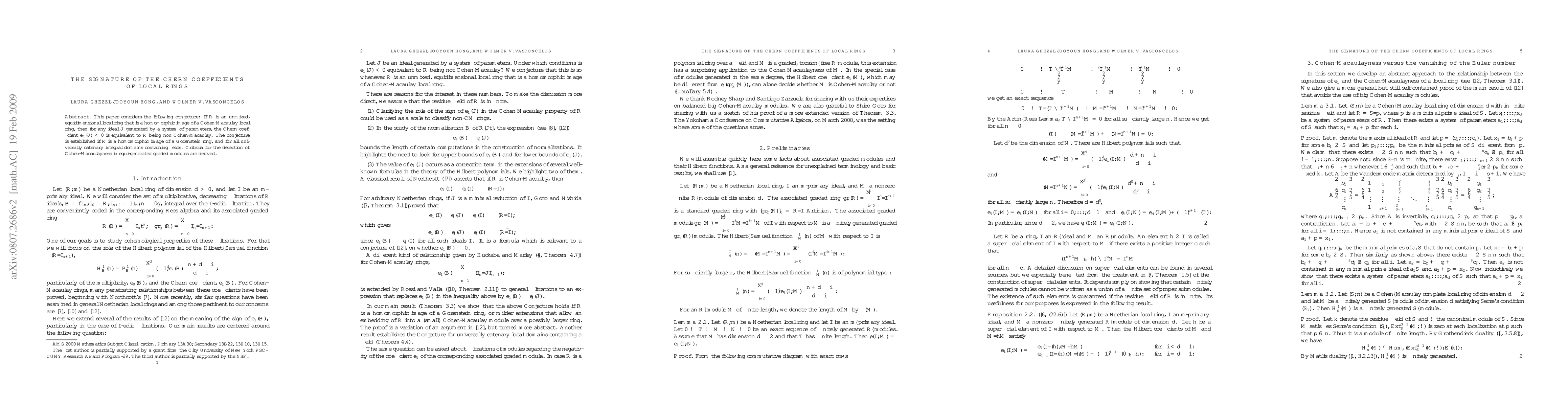 This paper considers the following conjecture: If $R$ is an unmixed, equidimensional local ring that is a homomorphic image of a Cohen-Macaulay local ring, then for any ideal $J$ generated by a system of parameters, the Chern coefficient $e_1(J)< 0$ is equivalent to $R$ being non Cohen-Macaulay. The conjecture is established if $R$ is a homomorphic image of a Gorenstein ring, and for all universally catenary integral domains containing fields. Criteria for the detection of Cohen-Macaulayness in equi-generated graded modules are derived.