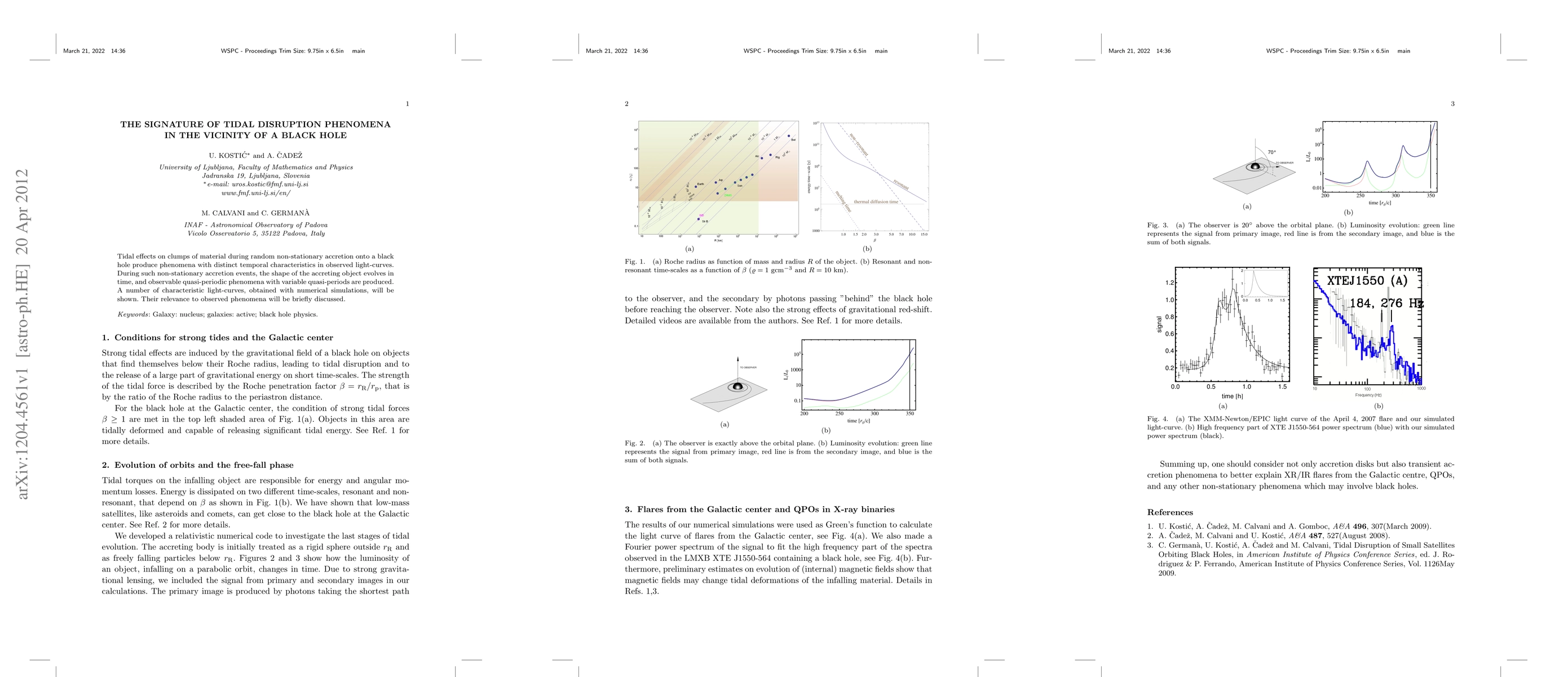 Tidal effects on clumps of material during random non-stationary accretion onto a black hole produce phenomena with distinct temporal characteristics in observed light-curves. During such non-stationary accretion events, the shape of the accreting object evolves in time, and observable quasi-periodic phenomena with variable quasi-periods are produced. A number of characteristic light-curves, obtained with numerical simulations, will be shown. Their relevance to observed phenomena will be briefly discussed.