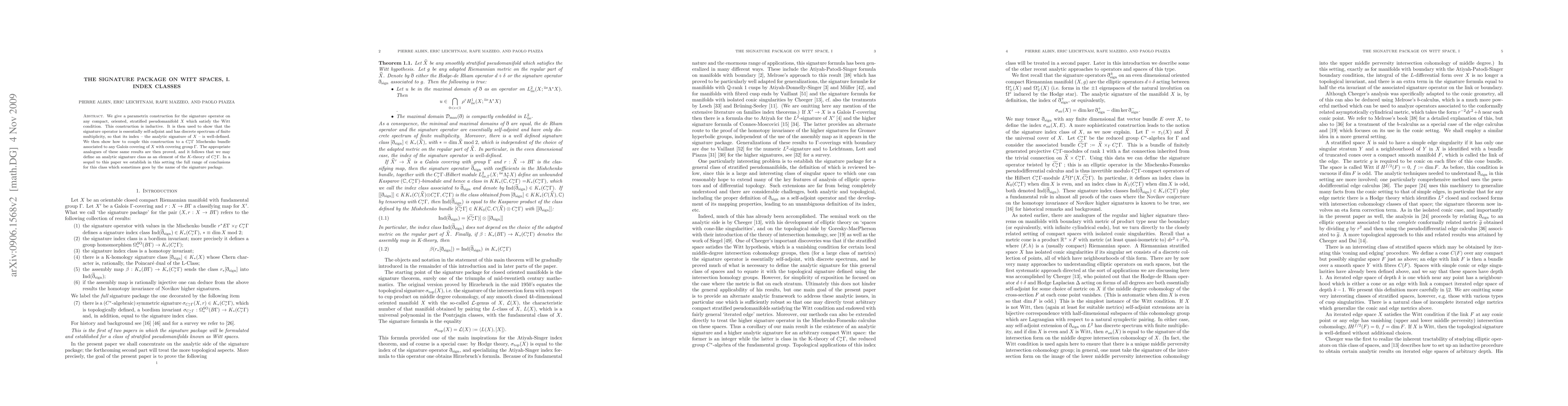 The research employs a parametrix construction for the signature operator on compact, oriented, stratified pseudomanifolds satisfying the Witt condition, utilizing an inductive approach.