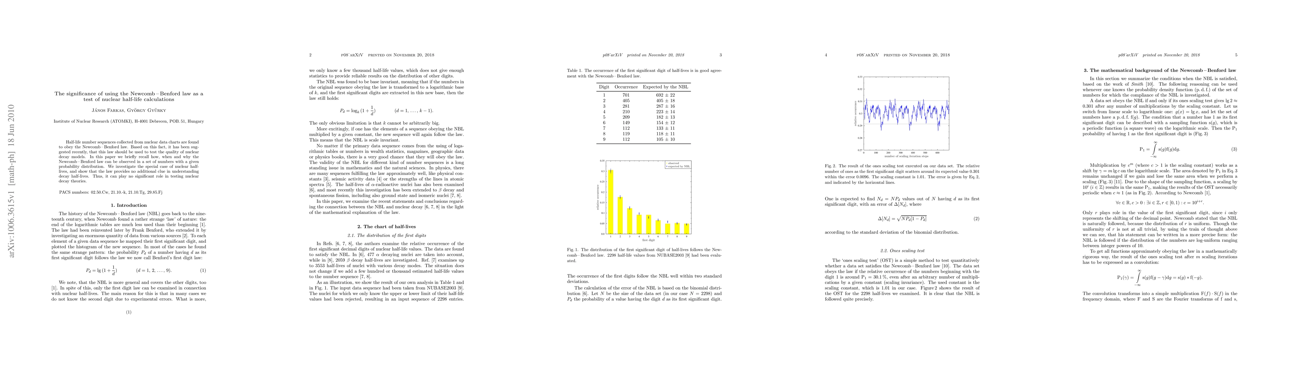 This paper explores the application of the Newcomb-Benford law to nuclear half-life calculations, finding that while the law applies to nuclear data, it does not provide meaningful insights into decay models and thus cannot serve as a reliable test of nuclear decay theories.