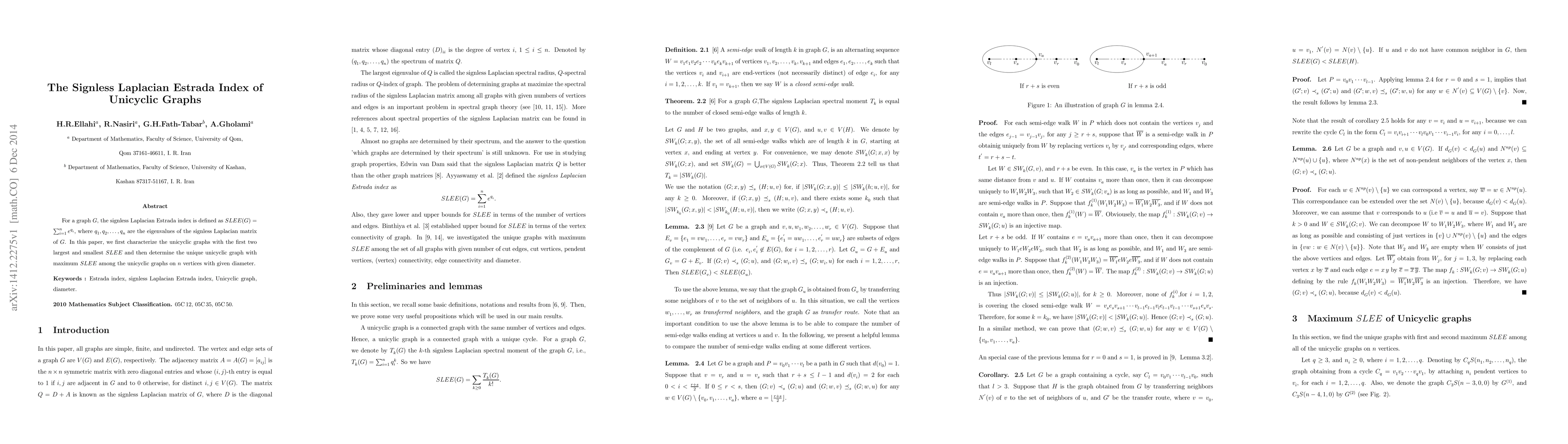 This work extends previous research on graph spectral indices by focusing specifically on unicyclic graphs and their SLEE, providing new characterizations and identifications of extremal graphs.