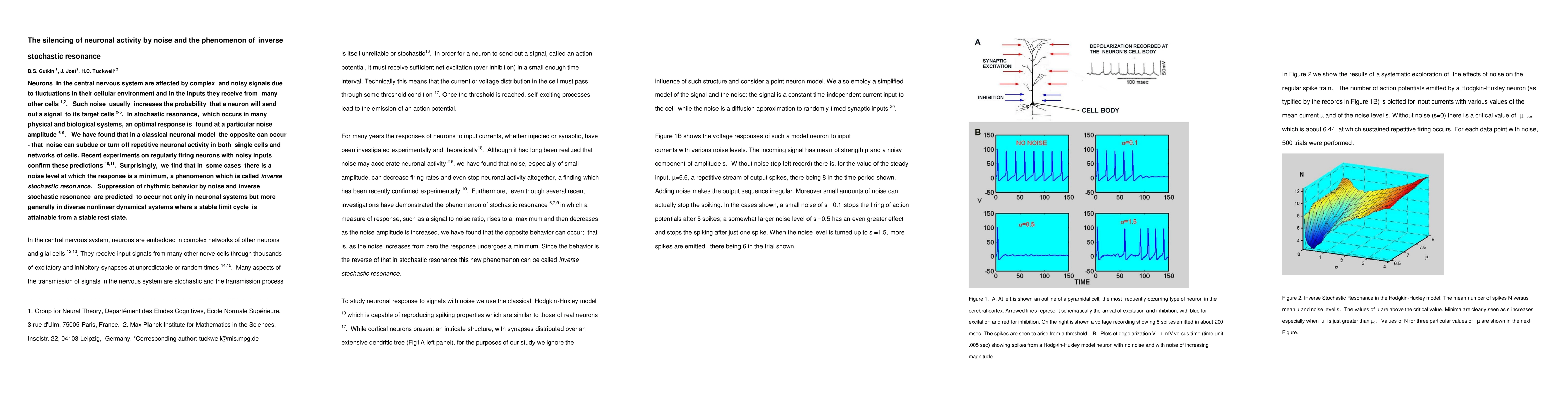 This paper investigates how noise can paradoxically silence neuronal activity, contrary to the usual enhancement of signal transmission. It introduces the concept of inverse stochastic resonance, where a specific noise level minimizes neuronal response, observed in both single neurons and networks, suggesting this phenomenon is prevalent in various nonlinear dynamical systems.