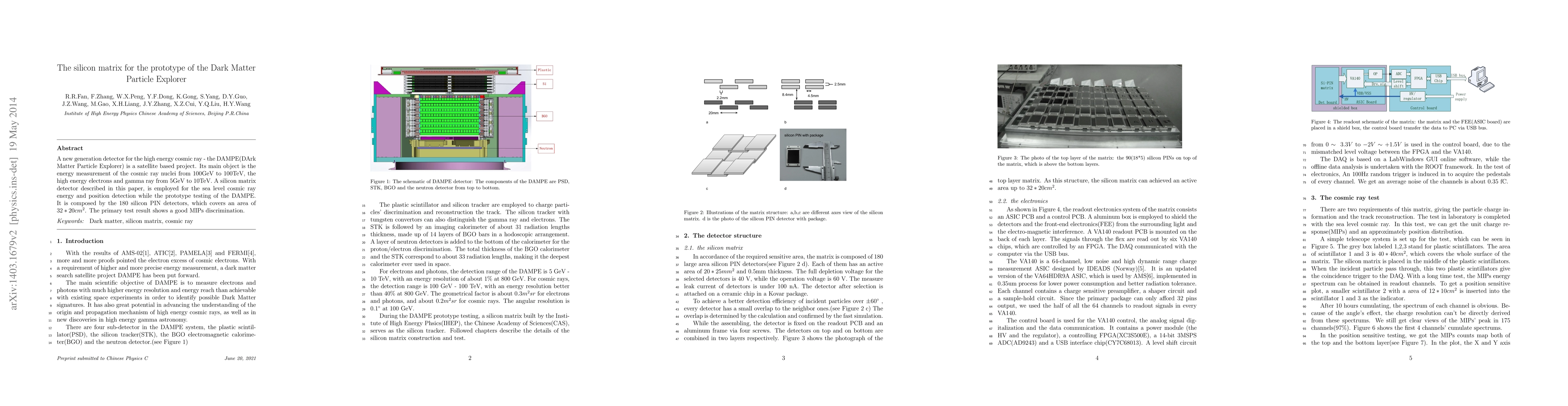 The paper describes a silicon matrix detector prototype for the DAMPE satellite project, which aims to measure cosmic ray nuclei and high-energy electrons and gamma rays. The silicon matrix, composed of 180 PIN detectors, covers 32*20 cm² and provides sea level cosmic ray energy and position detection, with initial testing results including MIPs energy spectrum and position maps.
