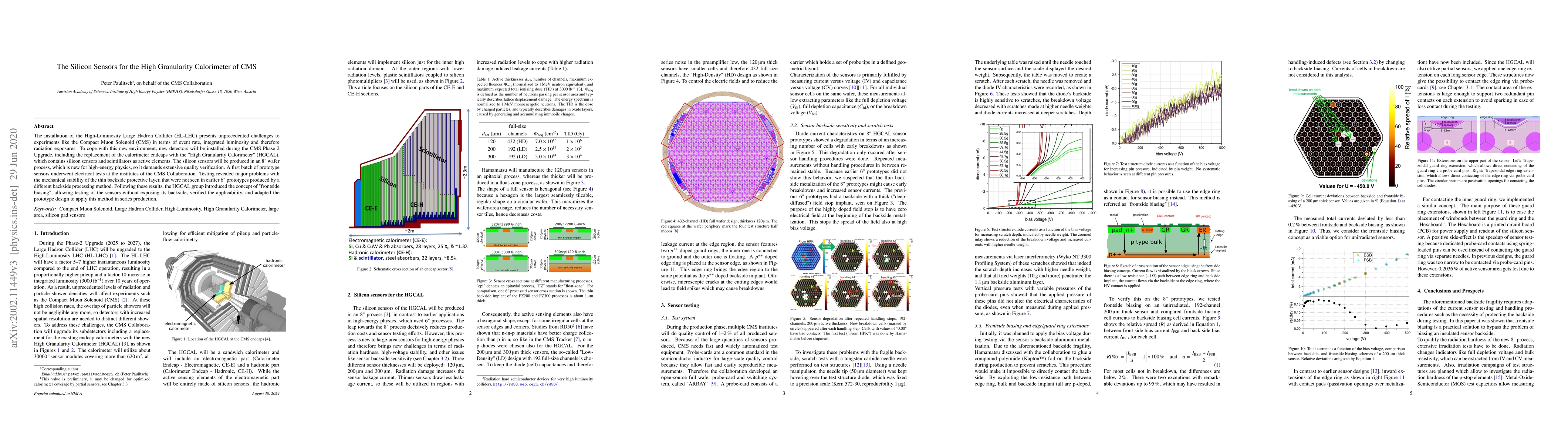 The installation of the High-Luminosity Large Hadron Collider (HL-LHC) presents unprecedented challenges to experiments like the Compact Muon Solenoid (CMS) in terms of event rate, integrated luminosity and therefore radiation exposures. To cope with this new environment, new detectors will be installed during the CMS Phase 2 Upgrade, including the replacement of the calorimeter endcaps with the "High Granularity Calorimeter" (HGCAL), which contains silicon sensors and scintillators as active elements. The silicon sensors will be produced in an 8" wafer process, which is new for high-energy physics, so it demands extensive quality verification. A first batch of prototype sensors underwent electrical tests at the institutes of the CMS Collaboration. Testing revealed major problems with the mechanical stability of the thin backside protective layer, that were not seen in earlier 6" prototypes produced by a different backside processing method. Following these results, the HGCAL group introduced the concept of "frontside biasing", allowing testing of the sensors without exposing its backside, verified the applicability, and adapted the prototype design to apply this method in series production.