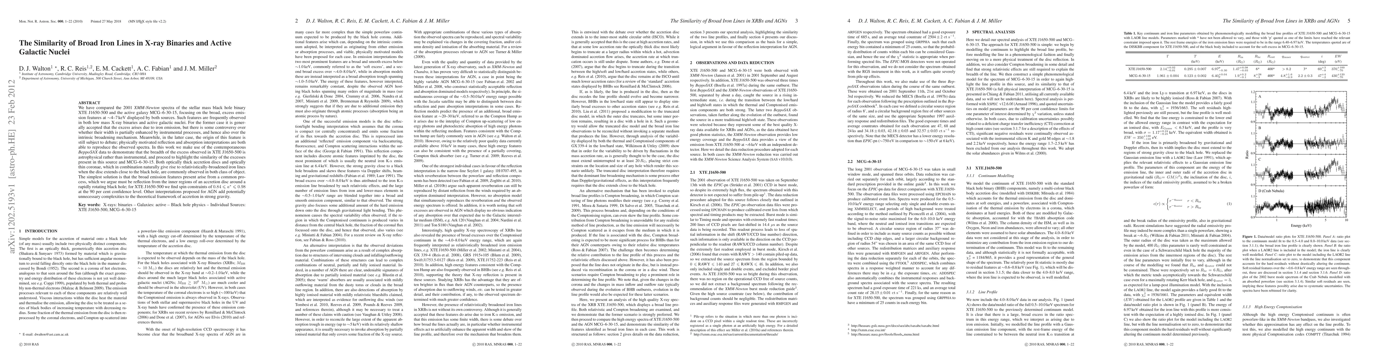 This paper compares the broad iron lines in X-ray binaries and active galactic nuclei, finding that the excess emission features in both types of objects likely arise from reflection off accretion discs around rapidly rotating black holes. The study concludes that the broad emission features are astrophysical rather than instrumental, simplifying the theoretical framework for accretion in strong gravity.