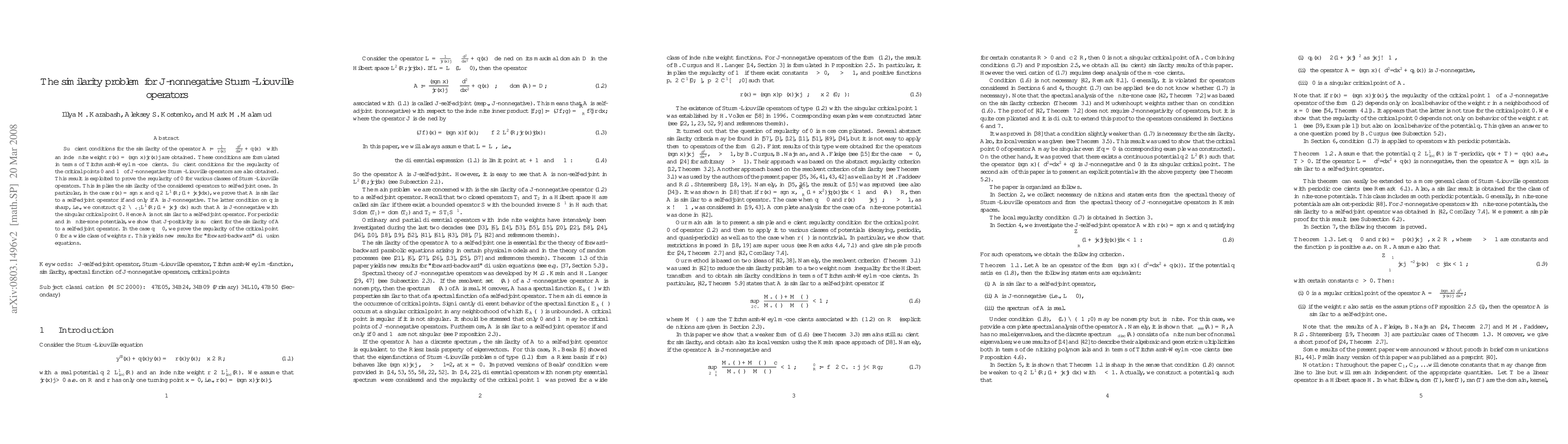 Researchers find conditions for similarity of non-standard Sturm-Liouville operators to self-adjoint ones, with implications for physical equations like diffusion.