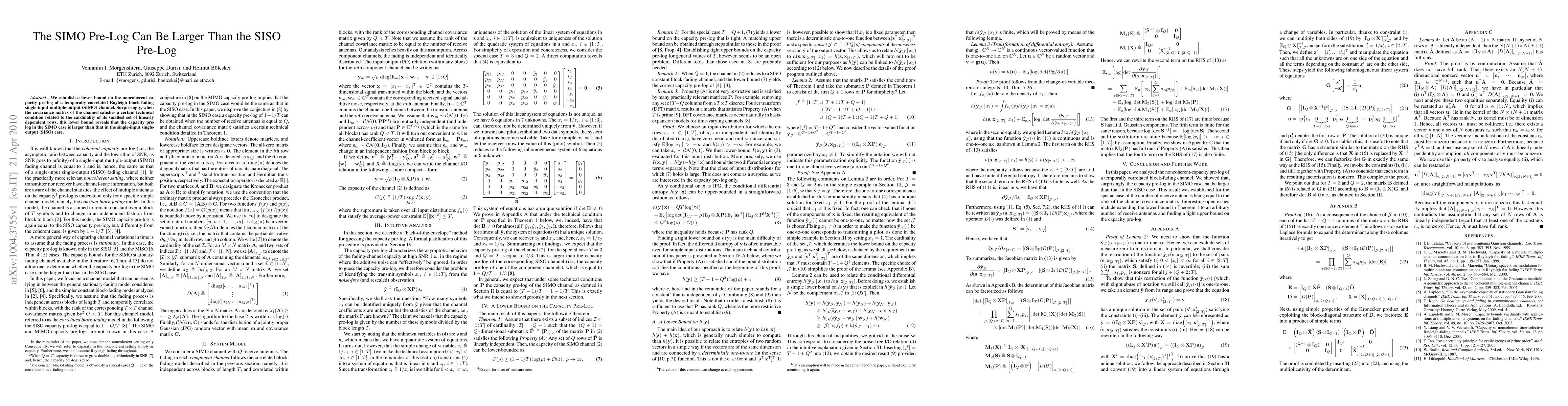 This paper demonstrates that under specific conditions on the covariance matrix, the pre-log factor for the capacity of a correlated Rayleigh block-fading SIMO channel exceeds that of a SISO channel, defying conventional expectations.