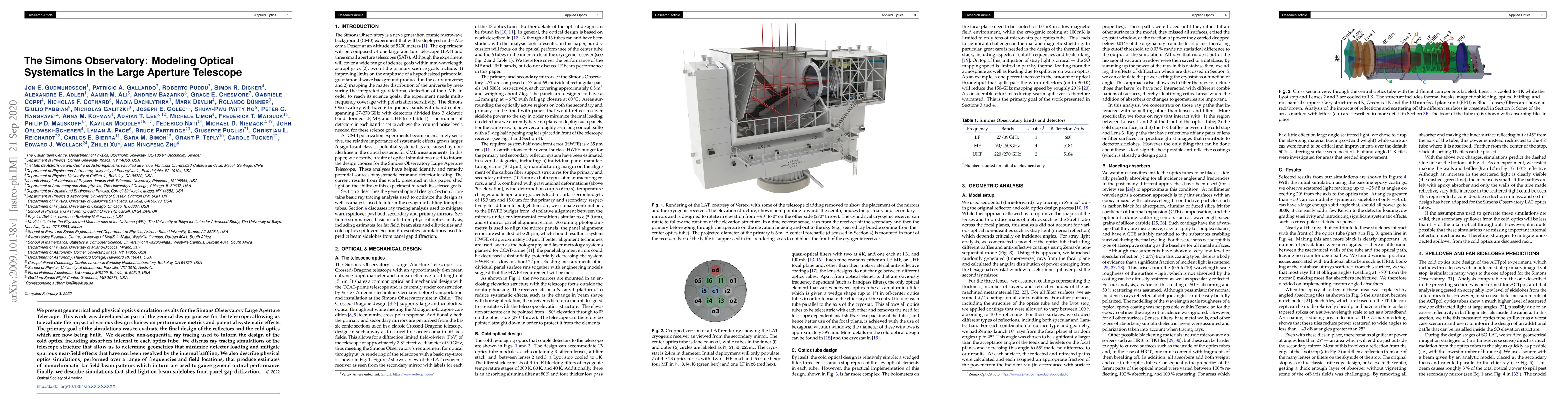 The Simons Observatory's Large Aperture Telescope's optical systematics were modeled using geometrical and physical optics simulations to evaluate design choices and mitigate potential systematic effects, including ray tracing and physical optics simulations to assess reflectors, cold optics, and beam sidelobes.
