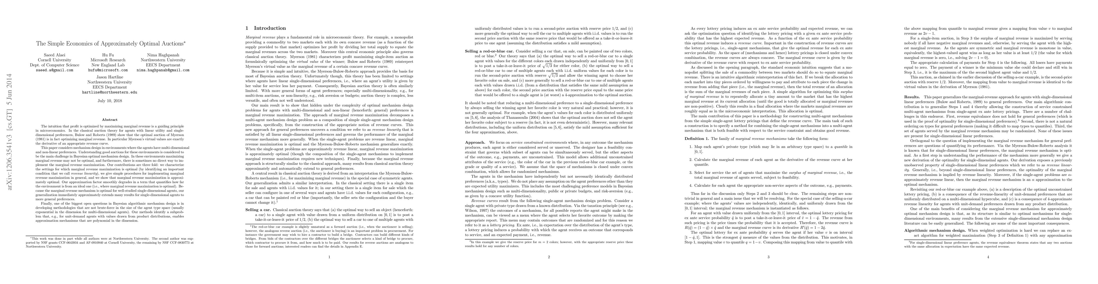 This paper explores auction design for agents with multi-dimensional and non-linear preferences, showing that marginal revenue maximization is optimal under a condition termed revenue linearity. It provides simple procedures for implementing this approach and demonstrates its approximate optimality, with the approximation factor depending on how far the environment deviates from ideal conditions.