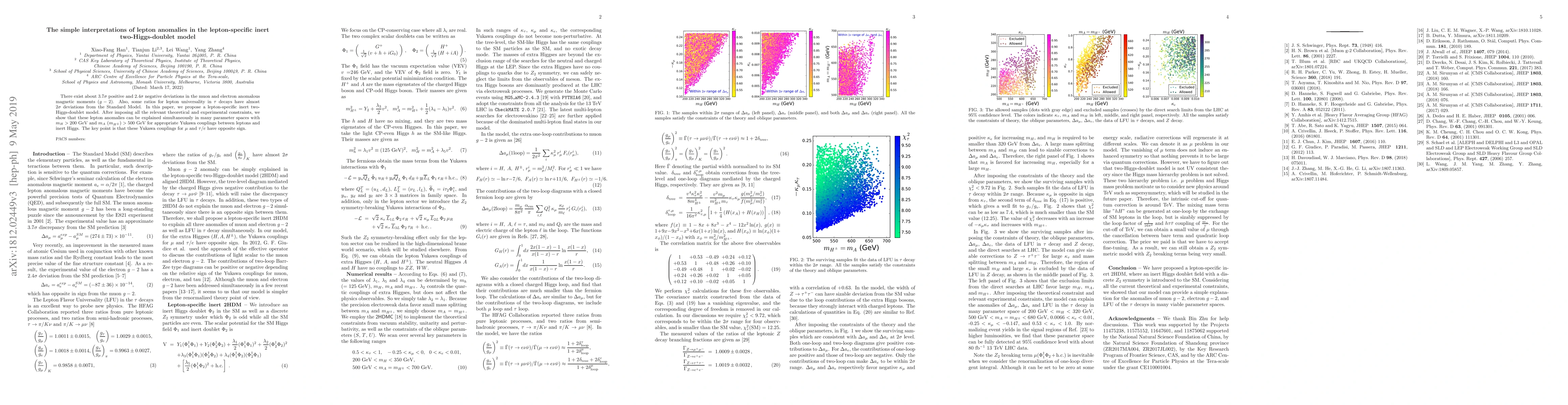 This paper proposes a lepton-specific inert two-Higgs-doublet model to explain observed anomalies in muon and electron magnetic moments and lepton universality ratios. It demonstrates that these anomalies can be addressed within the model's parameter space, particularly with heavy Higgs masses and opposite-sign Yukawa couplings for $\mu$ and $\tau$/$e$.