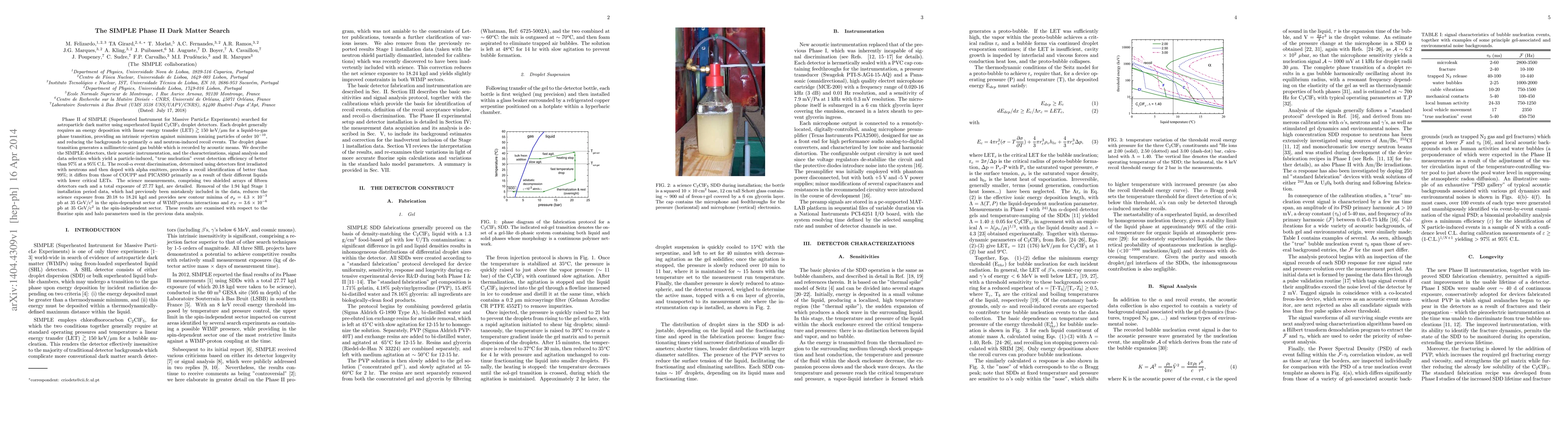 Phase II of SIMPLE (Superheated Instrument for Massive ParticLe Experiments) searched for astroparticle dark matter using superheated liquid C$_{2}$ClF$_{5}$ droplet detectors. Each droplet generally requires an energy deposition with linear energy transfer (LET) $\gtrsim$ 150 keV/$\mu$m for a liquid-to-gas phase transition, providing an intrinsic rejection against minimum ionizing particles of order 10$^{-10}$, and reducing the backgrounds to primarily $\alpha$ and neutron-induced recoil events. The droplet phase transition generates a millimetric-sized gas bubble which is recorded by acoustic means. We describe the SIMPLE detectors, their acoustic instrumentation, and the characterizations, signal analysis and data selection which yield a particle-induced, "true nucleation" event detection efficiency of better than 97% at a 95% C.L. The recoil-$\alpha$ event discrimination, determined using detectors first irradiated with neutrons and then doped with alpha emitters, provides a recoil identification of better than 99%; it differs from those of COUPP and PICASSO primarily as a result of their different liquids with lower critical LETs. The science measurements, comprising two shielded arrays of fifteen detectors each and a total exposure of 27.77 kgd, are detailed. Removal of the 1.94 kgd Stage 1 installation period data, which had previously been mistakenly included in the data, reduces the science exposure from 20.18 to 18.24 kgd and provides new contour minima of $\sigma_{p}$ = 4.3 $\times$ 10$^{-3}$ pb at 35 GeV/c$^{2}$ in the spin-dependent sector of WIMP-proton interactions and $\sigma_{N}$ = 3.6 $\times$ 10$^{-6}$ pb at 35 GeV/c$^{2}$ in the spin-independent sector. These results are examined with respect to the fluorine spin and halo parameters used in the previous data analysis.