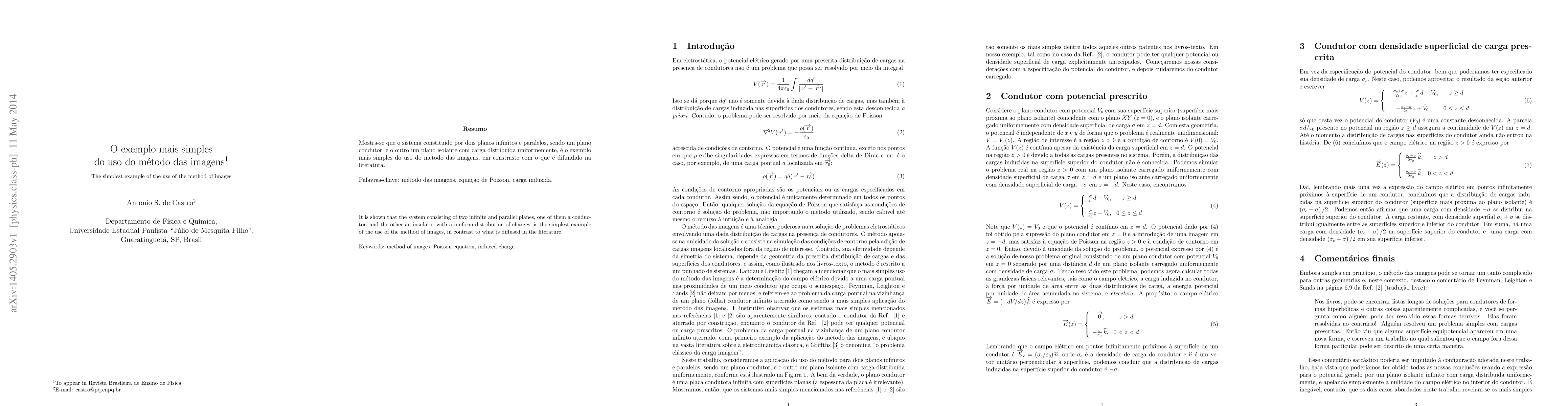 It is shown that the system consisting of two infinite and parallel planes, one of them a conductor, and the other an insulator with a uniform distribution of charges, is the simplest example of the use of the method of images, in contrast to what is diffused in the literature.