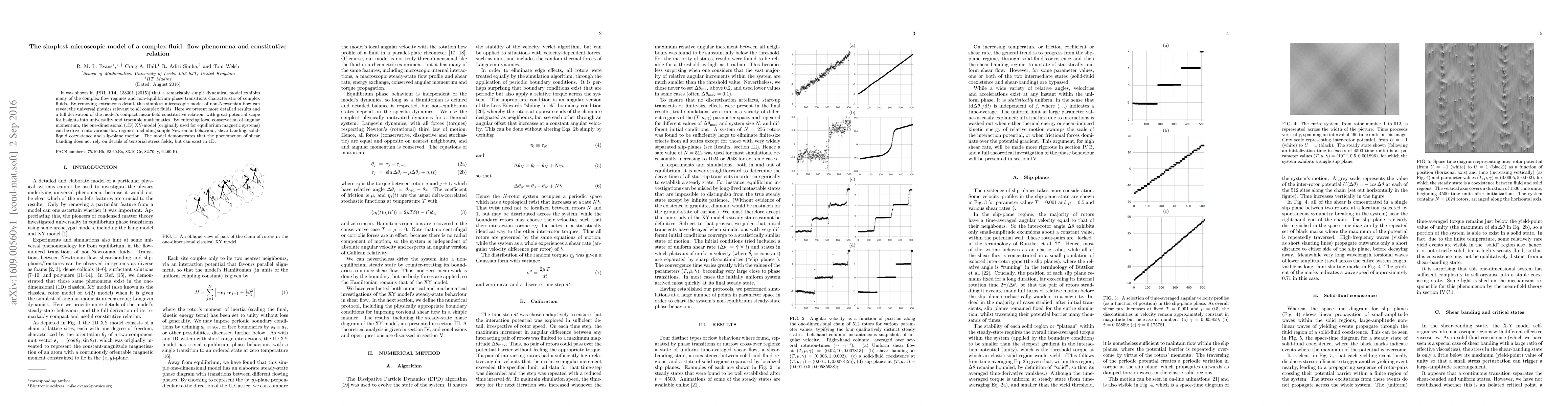 It was shown in [PRL 114, 138301 (2015)] that a remarkably simple dynamical model exhibits many of the complex flow regimes and non-equilibrium phase transitions characteristic of complex fluids. By removing extraneous detail, this simplest microscopic model of non-Newtonian flow can reveal the universal physics relevant to all complex fluids. Here we present more detailed results and a full derivation of the model's compact mean-field constitutive relation, with great potential scope for insights into universality and tractable mathematics. By enforcing local conservation of angular momentum, the one-dimensional (1D) XY-model (originally used for equilibrium magnetic systems) can be driven into various flow regimes, including simple Newtonian behaviour, shear banding, solid-liquid coexistence and slip-plane motion. The model demonstrates that the phenomenon of shear banding does not rely on details of tensorial stress fields, but can exist in 1D.