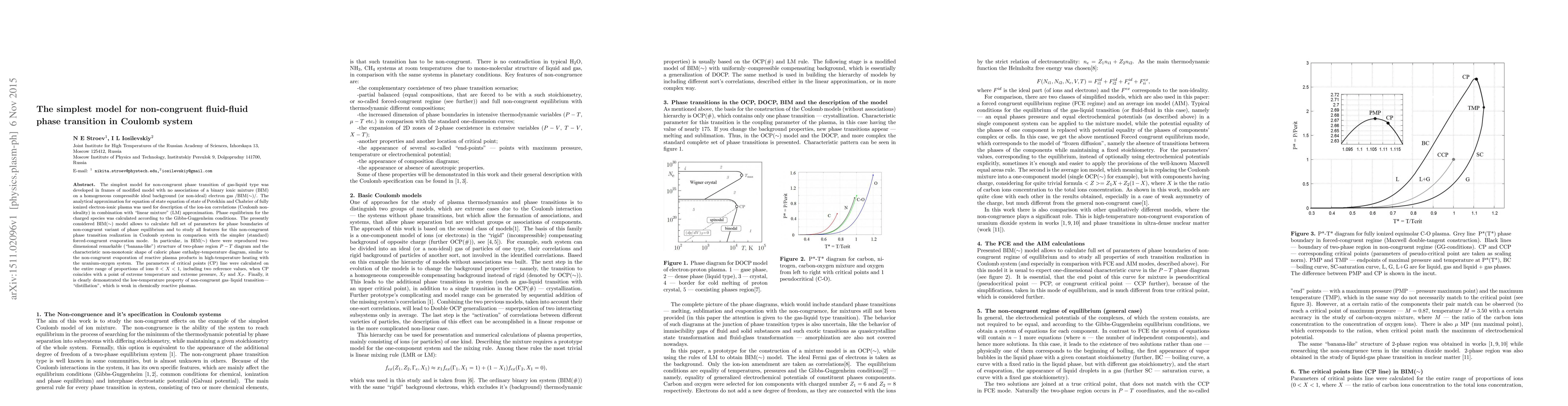 This paper develops a simplified model for non-congruent gas-liquid phase transitions in Coulomb systems, using a modified binary ionic mixture model. It calculates phase boundaries and critical points, reproducing notable features like the "banana-like" two-phase region and non-monotonic caloric curves, demonstrating the unique properties of non-congruent transitions in reactive plasmas.