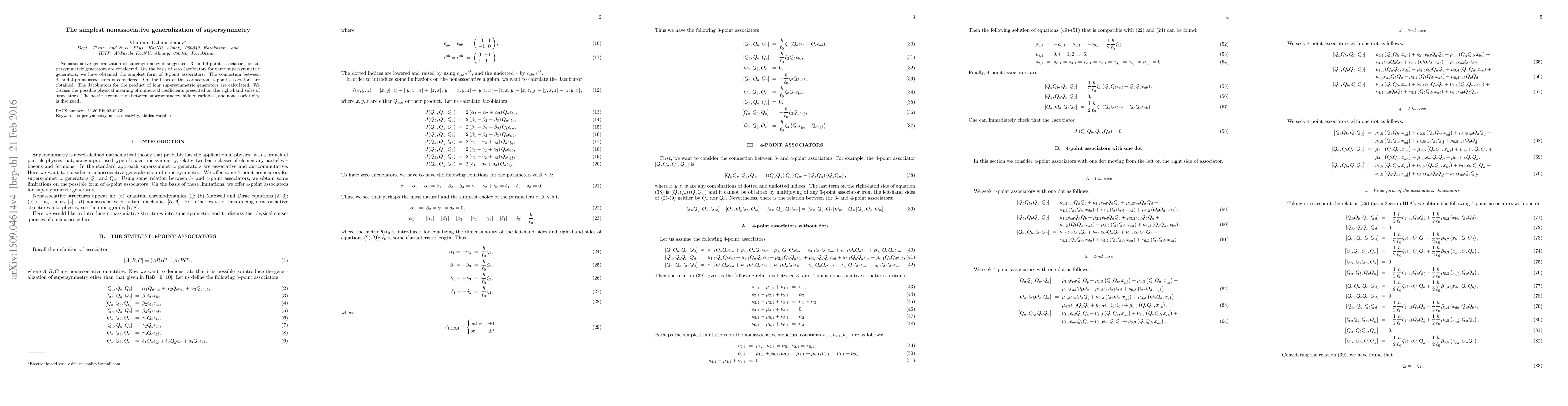 This paper proposes a nonassociative generalization of supersymmetry, where 3-point associators for supersymmetric generators are derived from zero Jacobiators, and then used to obtain 4-point associators. The study explores the connection between these associators and their physical implications.
