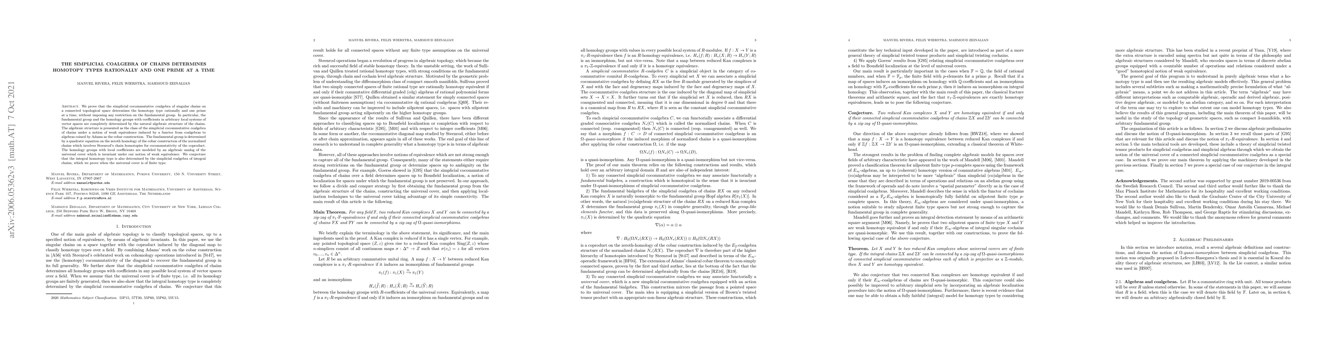 We prove that the simplicial cocommutative coalgebra of singular chains on a connected topological space determines the homotopy type rationally and one prime at a time, without imposing any restriction on the fundamental group. In particular, the fundamental group and the homology groups with coefficients in arbitrary local systems of vector spaces are completely determined by the natural algebraic structure of the chains. The algebraic structure is presented as the class of the simplicial cocommutative coalgebra of chains under a notion of weak equivalence induced by a functor from coalgebras to algebras coined by Adams as the cobar construction. The fundamental group is determined by a quadratic equation on the zeroth homology of the cobar construction of the normalized chains which involves Steenrod's chain homotopies for cocommutativity of the coproduct. The homology groups with local coefficients are modeled by an algebraic analog of the universal cover which is invariant under our notion of weak equivalence. We conjecture that the integral homotopy type is also determined by the simplicial coalgebra of integral chains, which we prove when the universal cover is of finite type.