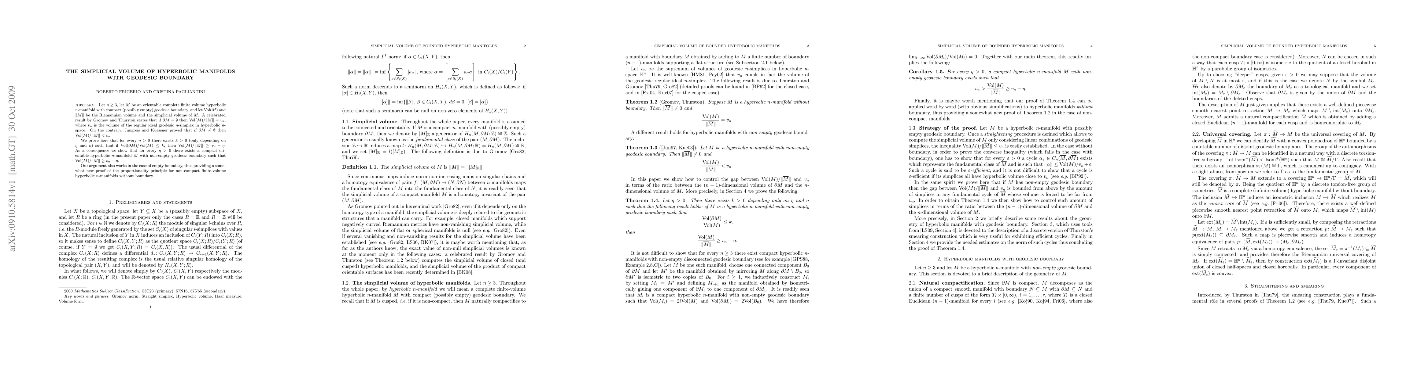 This paper proves that for hyperbolic n-manifolds with geodesic boundary, when the boundary's volume is sufficiently small relative to the manifold's volume, the ratio between the manifold's Riemannian volume and its simplicial volume exceeds v_n minus any small positive number, thus supporting a modified version of Gromov and Thurston's proportionality principle. It also extends this result to manifolds with non-empty boundaries.
