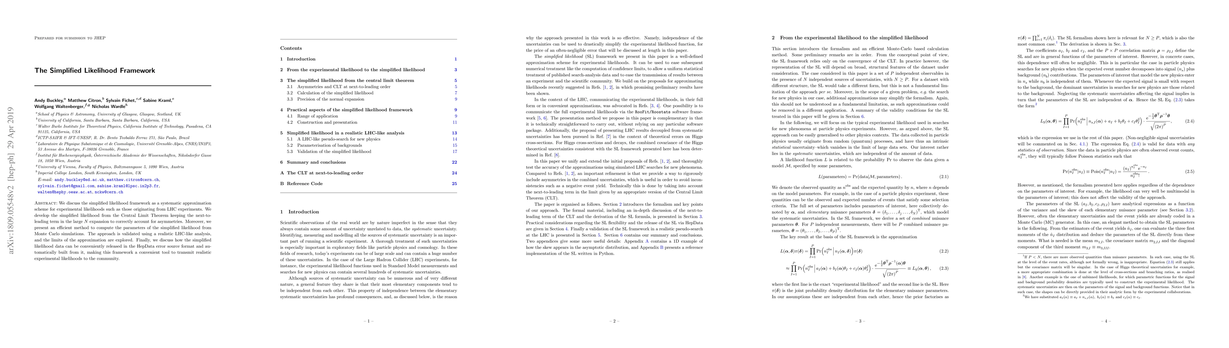 We discuss the simplified likelihood framework as a systematic approximation scheme for experimental likelihoods such as those originating from LHC experiments. We develop the simplified likelihood from the Central Limit Theorem keeping the next-to-leading term in the large $N$ expansion to correctly account for asymmetries. Moreover, we present an efficient method to compute the parameters of the simplified likelihood from Monte Carlo simulations. The approach is validated using a realistic LHC-like analysis, and the limits of the approximation are explored. Finally, we discuss how the simplified likelihood data can be conveniently released in the HepData error source format and automatically built from it, making this framework a convenient tool to transmit realistic experimental likelihoods to the community.