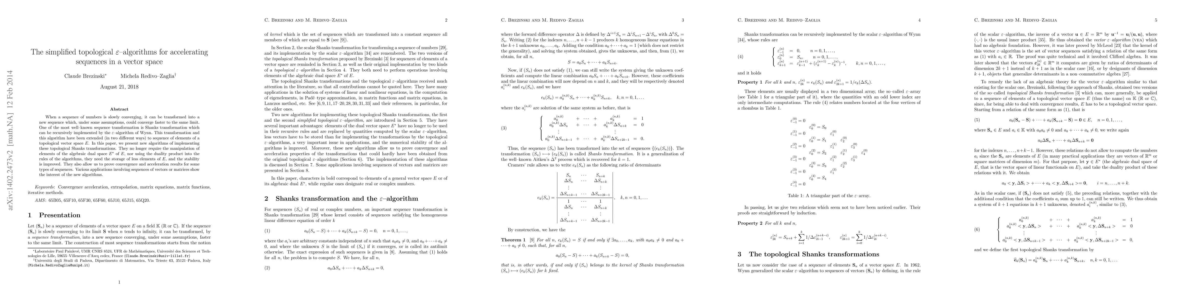 When a sequence of numbers is slowly converging, it can be transformed into a new sequence which, under some assumptions, could converge faster to the same limit. One of the most well--known sequence transformation is Shanks transformation which can be recursively implemented by the $\varepsilon$--algorithm of Wynn. This transformation and this algorithm have been extended (in two different ways) to sequence of elements of a topological vector space $E$. In this paper, we present new algorithms of implementing these topological Shanks transformations. They no longer require the manipulation of elements of the algebraic dual space $E^*$ of $E$, nor using the duality product into the rules of the algorithms, they need the storage of less elements of $E$, and the stability is improved. They also allow us to prove convergence and acceleration results for some types of sequences. Various applications involving sequences of vectors or matrices show the interest of the new algorithms.