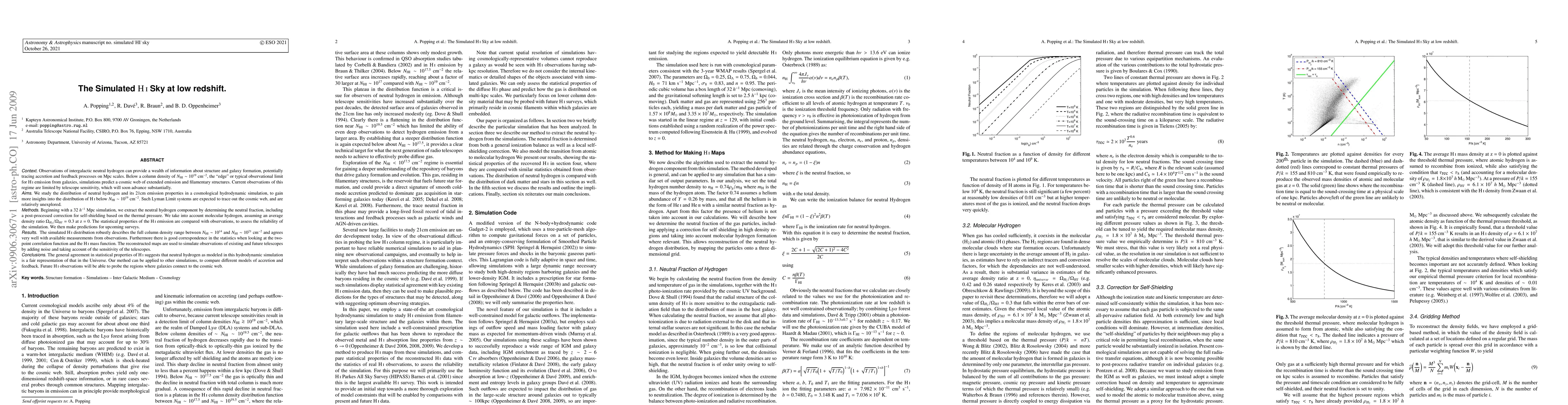 Observations of intergalactic neutral hydrogen can provide a wealth of information about structure and galaxy formation, potentially tracing accretion and feedback processes on Mpc scales. Below a column density of NHI ~ 10^19 cm-2, the "edge" or typical observational limit for HI emission from galaxies, simulations predict a cosmic web of extended emission and filamentary structures. We study the distribution of neutral hydrogen and its 21cm emission properties in a cosmological hydrodynamic simulation, to gain more insights into the distribution of HI below NHI ~ 10^19 cm-2. Such Lyman Limit systems are expected to trace out the cosmic web, and are relatively unexplored. Beginning with a 32 h^-1 Mpc simulation, we extract the neutral hydrogen component by determining the neutral fraction, including a post-processed correction for self-shielding based on the thermal pressure. We take into account molecular hydrogen, assuming an average density ratio Omega_H2 / Omega_HI = 0.3 at z = 0. The statistical properties of the HI emission are compared with observations, to assess the reliability of the simulation. The simulated HI distribution robustly describes the full column density range between NHI ~ 10^14 and NHI ~ 10^21 cm-2 and agrees very well with available measurements from observations. Furthermore there is good correspondence in the statistics when looking at the two-point correlation function and the HI mass function. The reconstructed maps are used to simulate observations of existing and future telescopes by adding noise and taking account of the sensitivity of the telescopes. The general agreement in statistical properties of HI suggests that neutral hydrogen as modeled in this hydrodynamic simulation is a fair representation of that in the Universe. (abridged)