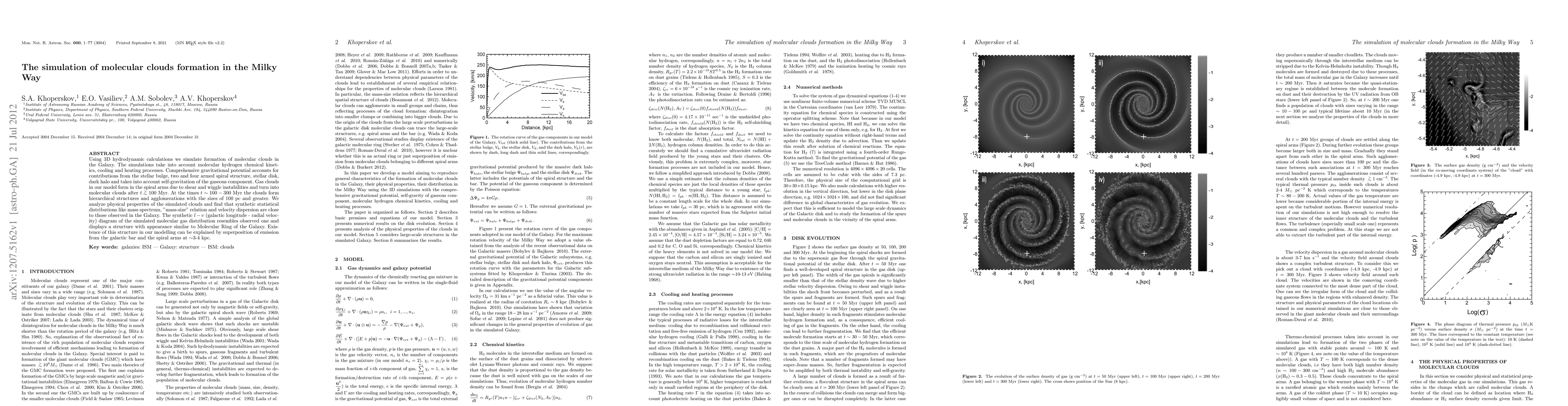 Researchers simulated the formation of molecular clouds in the Milky Way using 3D hydrodynamic calculations, finding that they form hierarchical structures similar to observed clouds and display a structure resembling the Galaxy's Molecular Ring.