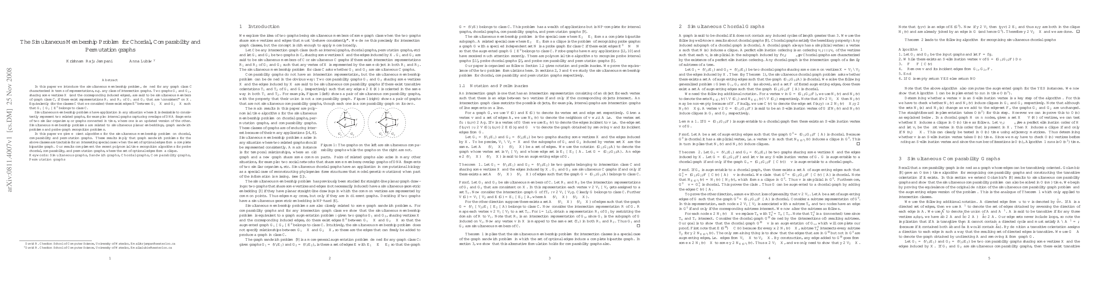 The paper presents efficient algorithms for the simultaneous membership problem on chordal, comparability, and permutation graphs, along with a proof that graph sandwich problems for these classes are tractable under specific conditions.