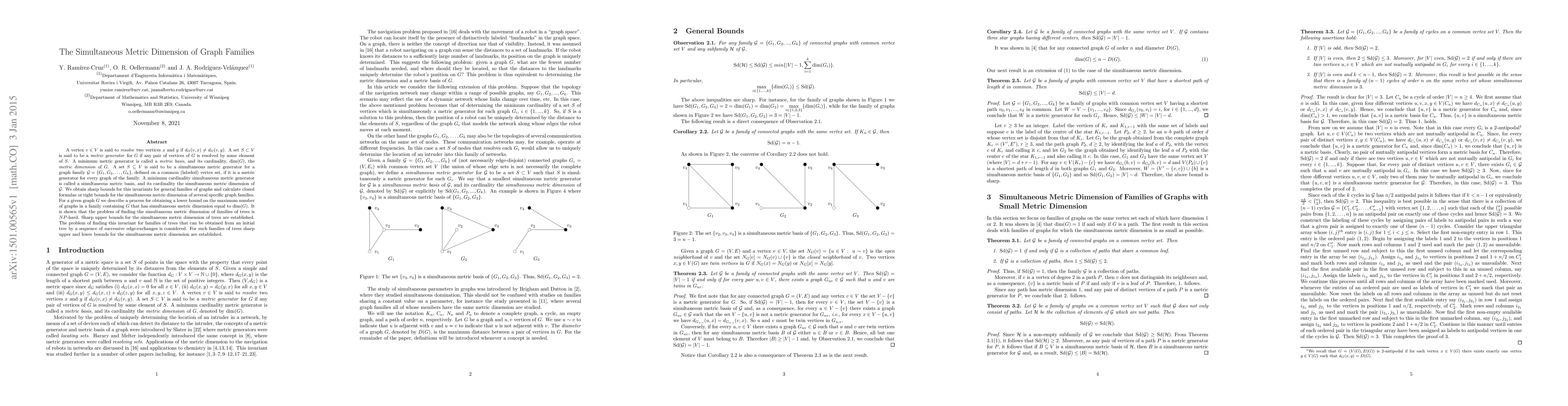 The paper explores the concept of simultaneous metric dimension for graph families, establishing bounds and specific formulae for various graph types. It shows the NP-hardness of determining the simultaneous metric dimension for families of trees, while providing sharp upper and lower bounds for such families derived from initial trees through edge-exchanges.