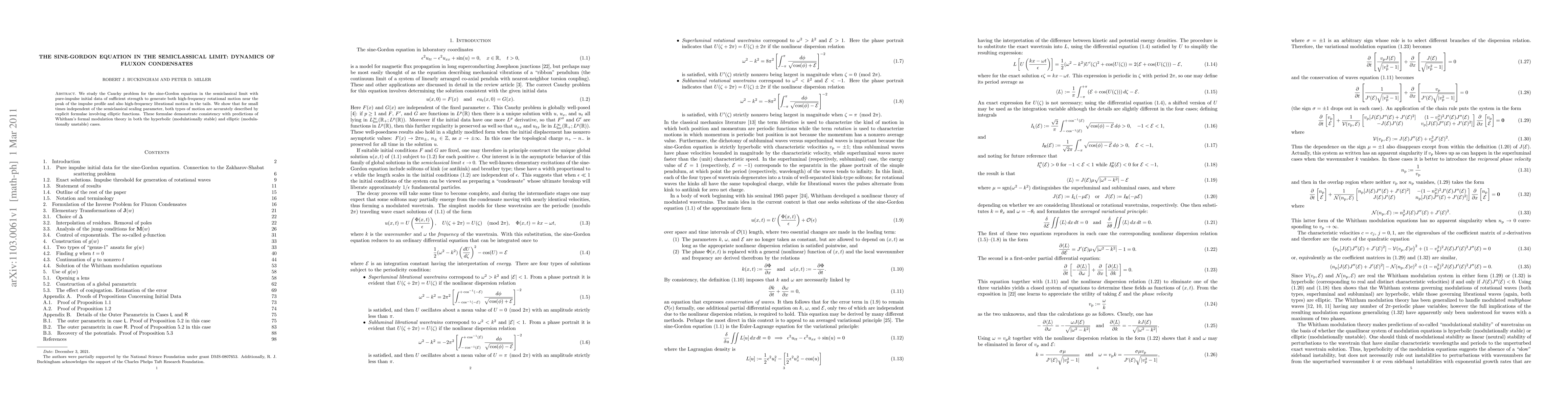 This paper investigates the dynamics of fluxon condensates in the sine-Gordon equation under semiclassical conditions. It reveals that high-frequency motions near the impulse peak and in the tails are well-described by explicit formulae involving elliptic functions, consistent with Whitham's modulation theory predictions.