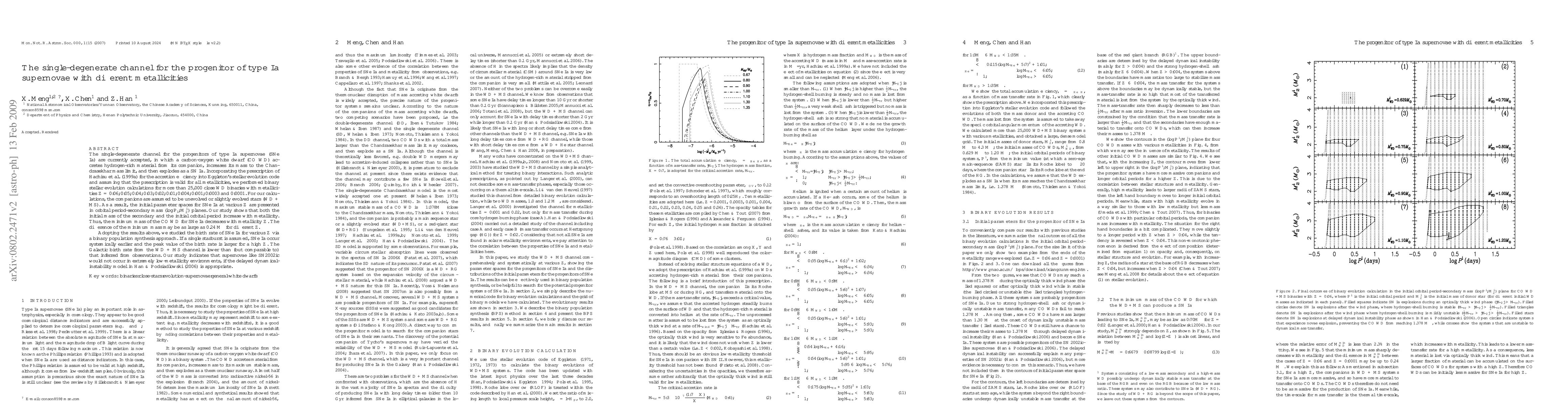This paper investigates the single-degenerate channel for type Ia supernovae progenitors across various metallicities, finding that the initial mass of the secondary and orbital period increase with metallicity, while the minimum mass of the carbon-oxygen white dwarf decreases. The study also suggests a higher birth rate for supernovae in higher metallicity environments.