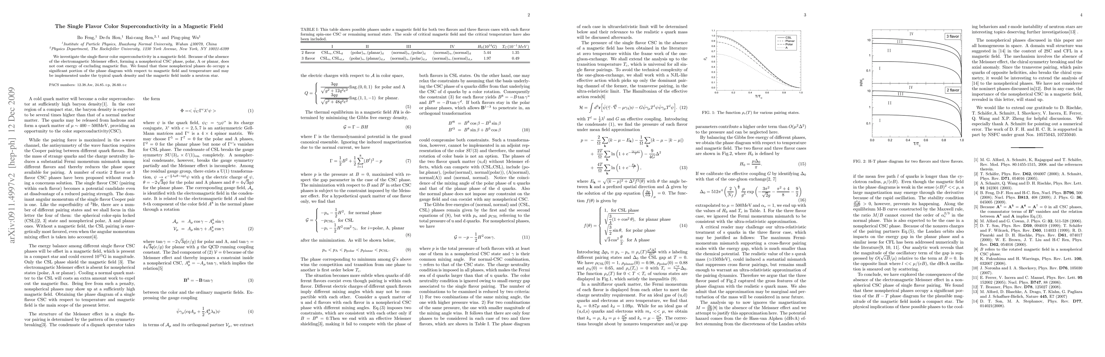 This paper explores single flavor color superconductivity in a magnetic field, revealing that nonspherical phases like polar or planar do not incur energy costs for excluding magnetic flux. These phases occupy a significant area in the phase diagram and could exist under typical quark densities found in compact stars.